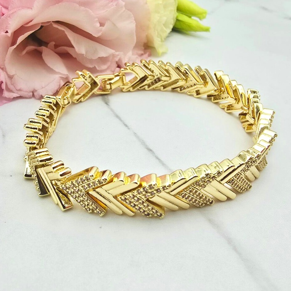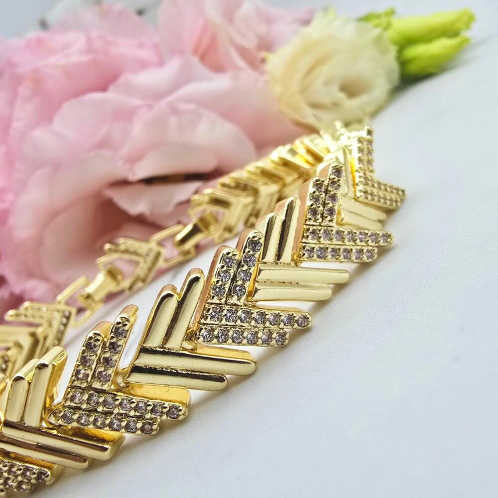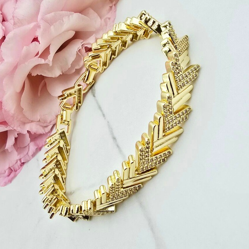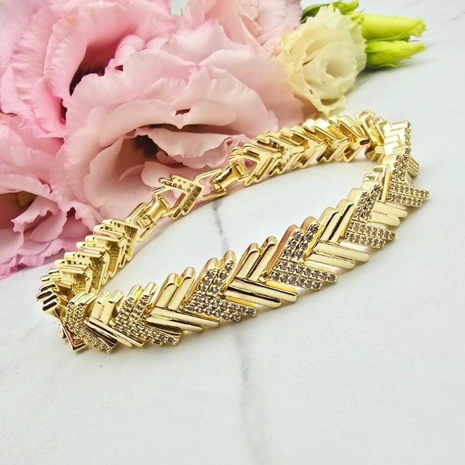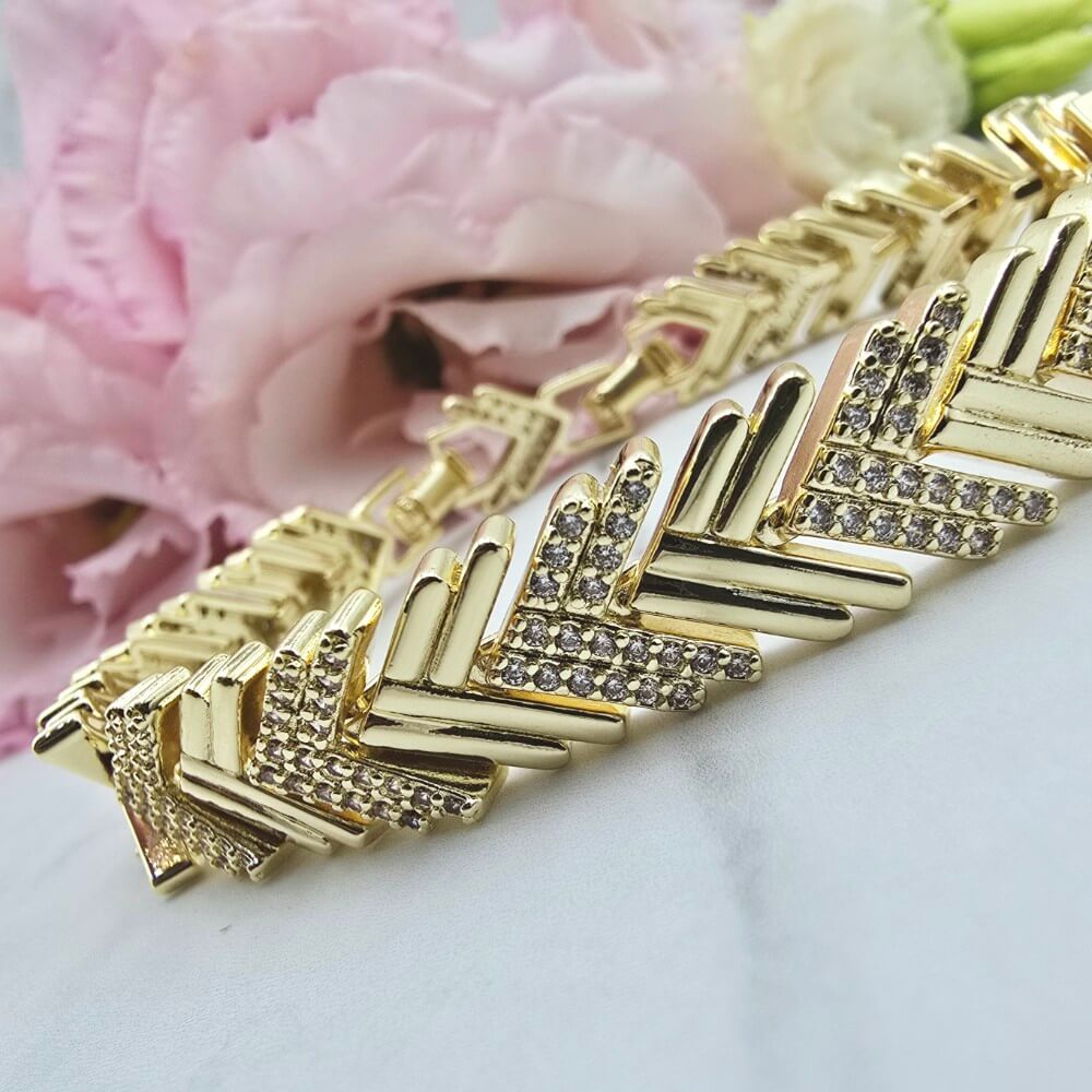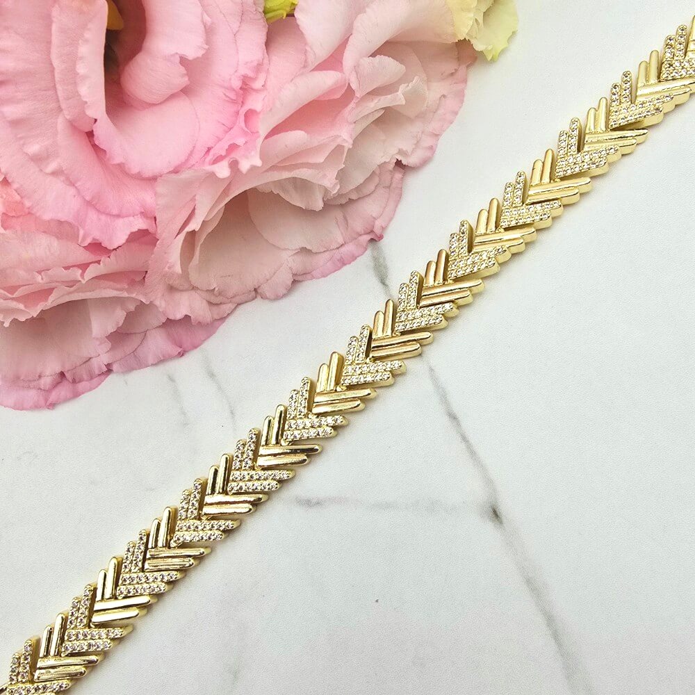 Bransoletka z kategorii PREMIUM StaloweLOVE PREMIUM szerszy splot łańcuszka - wzór jodełka z ozdobnymi cyrkoniami. Jaśniejszy odcień złota. Bardzo efektowna bransoletka z kategorii PREMIUM - super jakość wykonania.