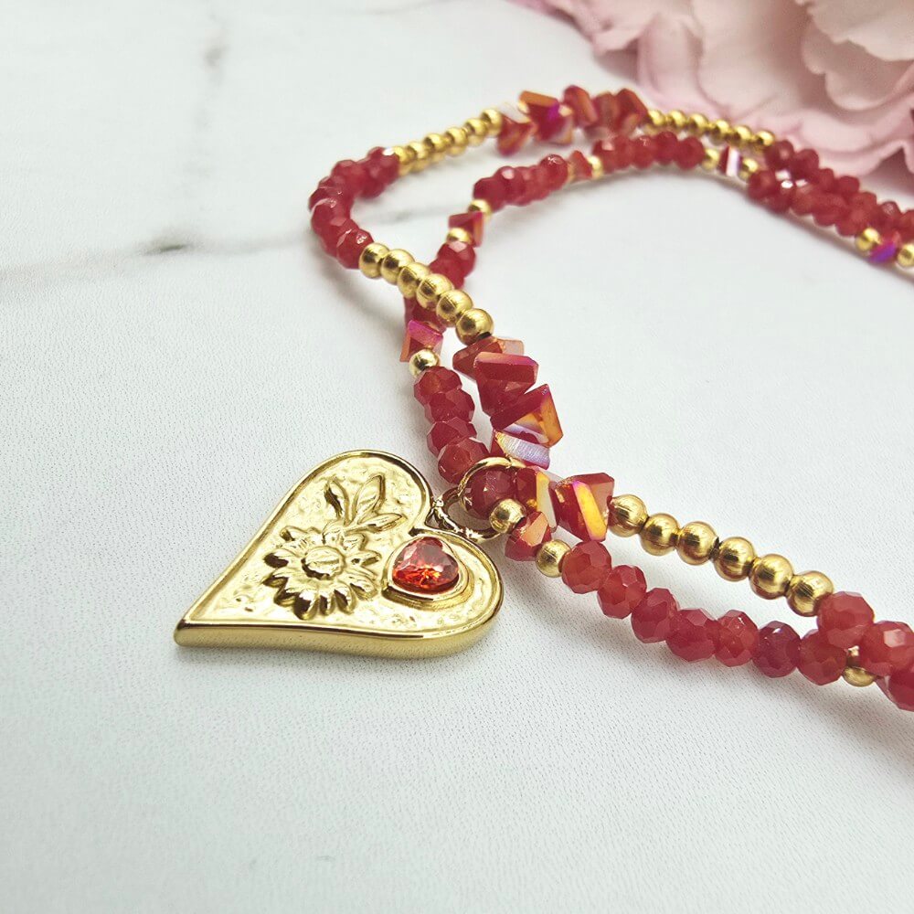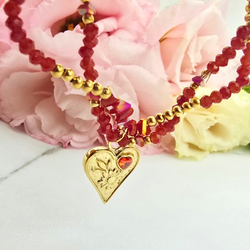 Stal chirurgiczna bransoletka czerwone kryształki serce