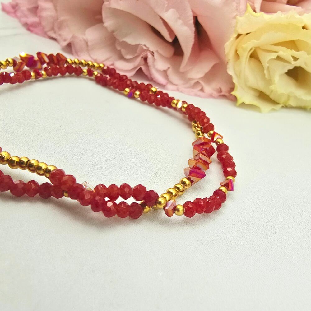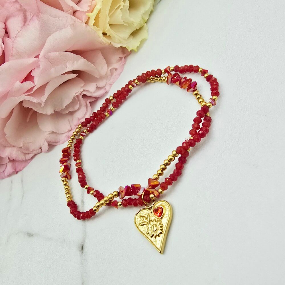 Świetna bransoletka gumkowa podwójna z kolekcji StaloweLOVE PREMIUM kryształki czerwone i serce z czerwonym kryształkiem.