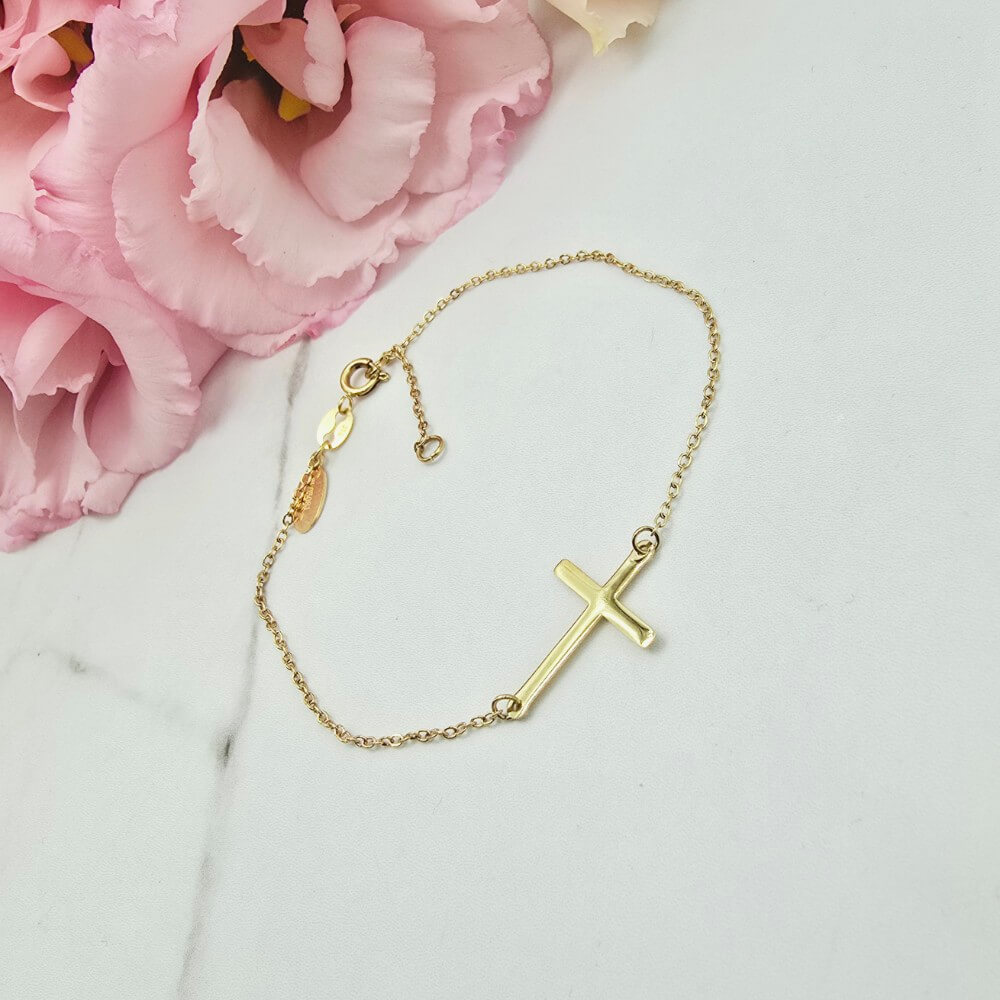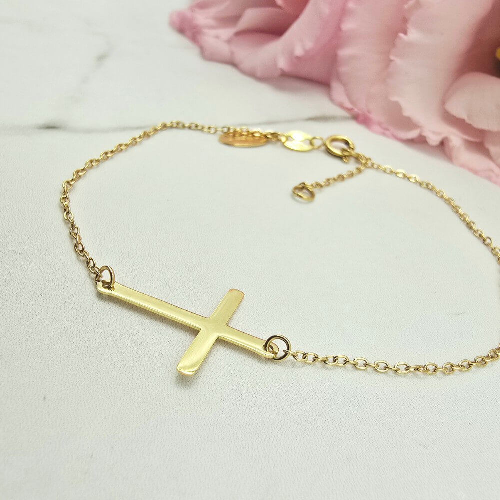 Delikatna bransoletka StaloweLOVE z jednym krzyżykiem umieszczonym poziomo. Klasyczna bransoletka w stylu celebrytki świetna do noszenia na co dzień jak i w komplecie np. z kolczykami lub naszyjnikiem świetnie uzupełnią twoją wieczorową kreację!!.