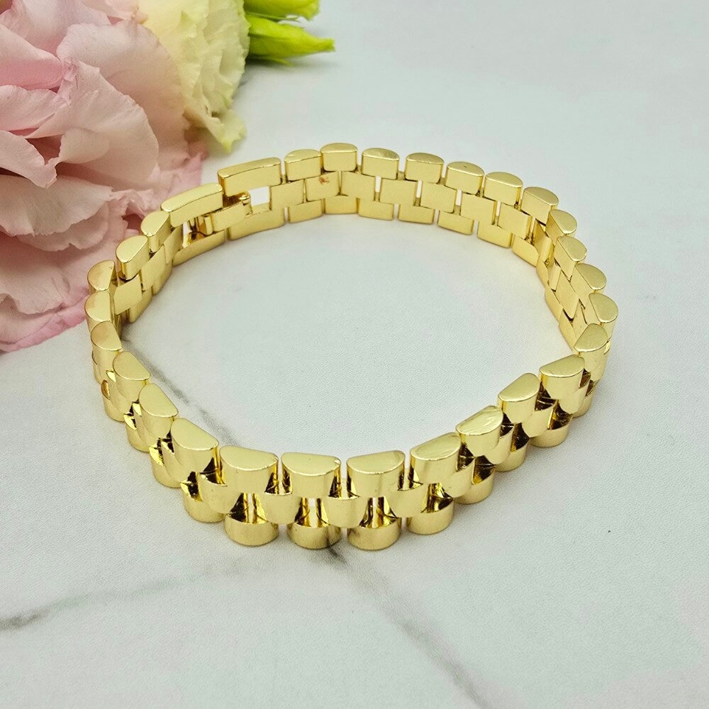 Bransoletka z kategorii PREMIUM StaloweLOVE szeroki splot łańcuszka - tzw. "bransoletka modułowa". Jaśniejszy odcień złota. Bardzo efektowna bransoletka.