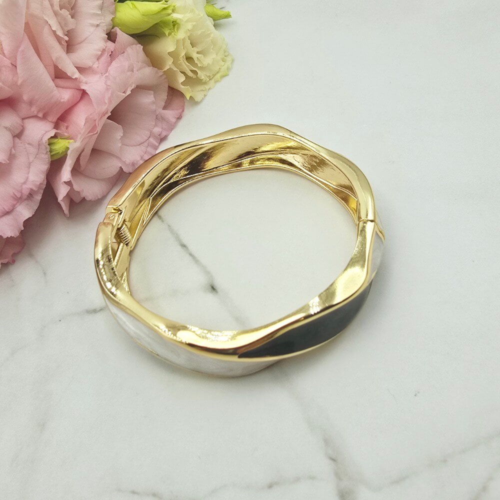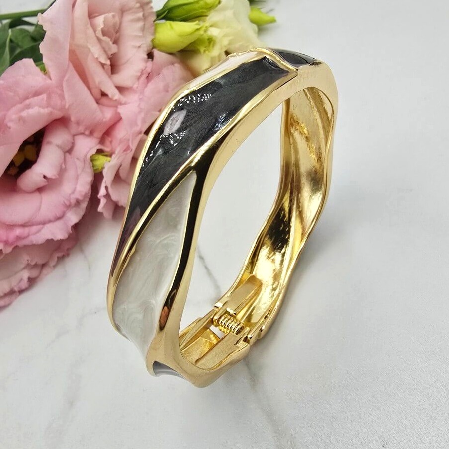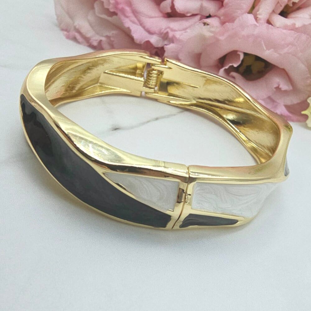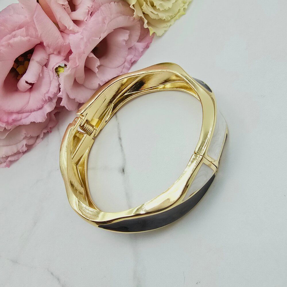 Bransoletka StaloweLOVE PREMIUM sztywna - zamykana na sprężynkę. Bardzo ciekawa bransoletka czarno białe zdobienie.