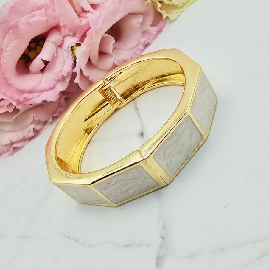 Bransoletka STAL CHIRURGICZNA sztywna na sprężynce masa perłowa