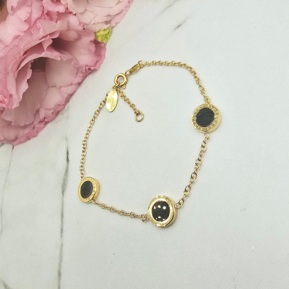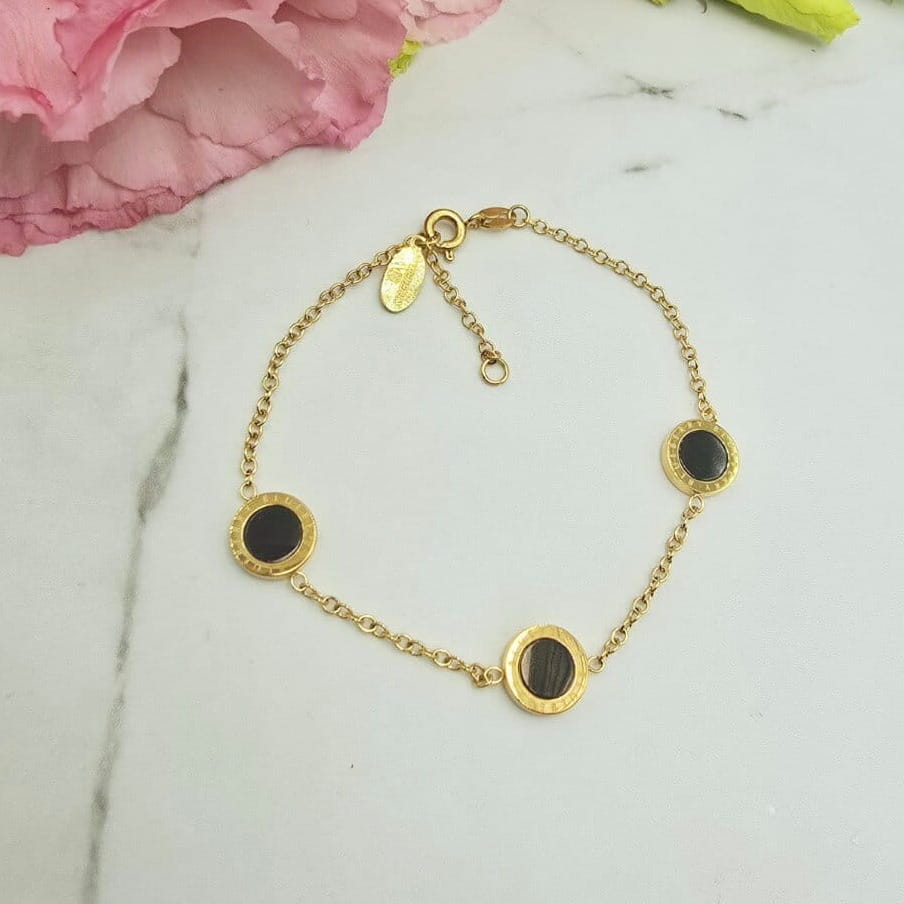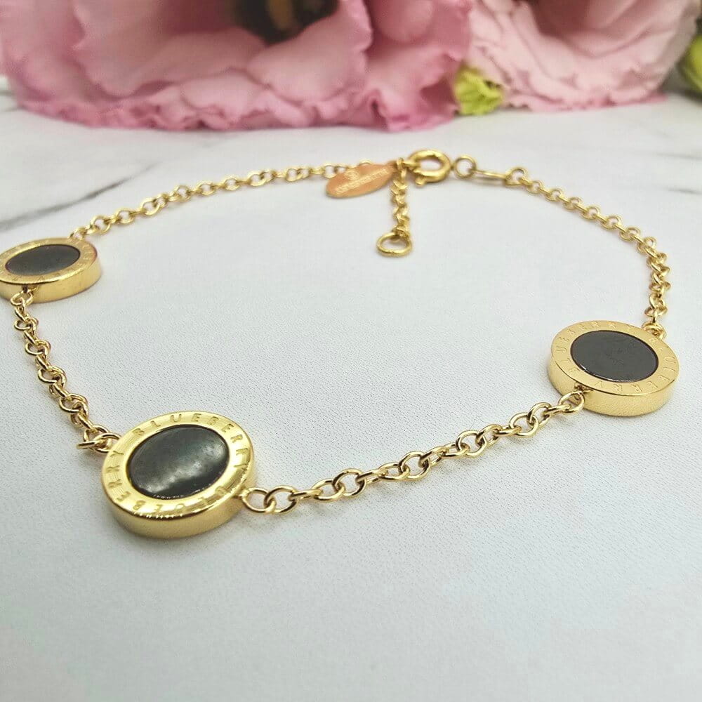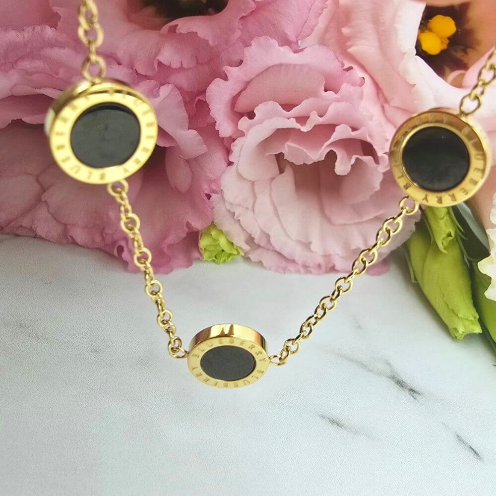 Bardzo ciekawy i efektowny model. Bransoletka z kategorii PREMIUM StaloweLOVE trzy okrągłe medaliony - z czarnym środkiem. W około medalionów wygrawerowane litery. Bardzo efektowna bransoletka.