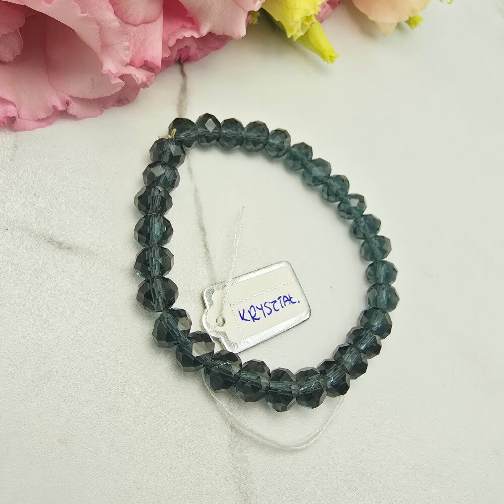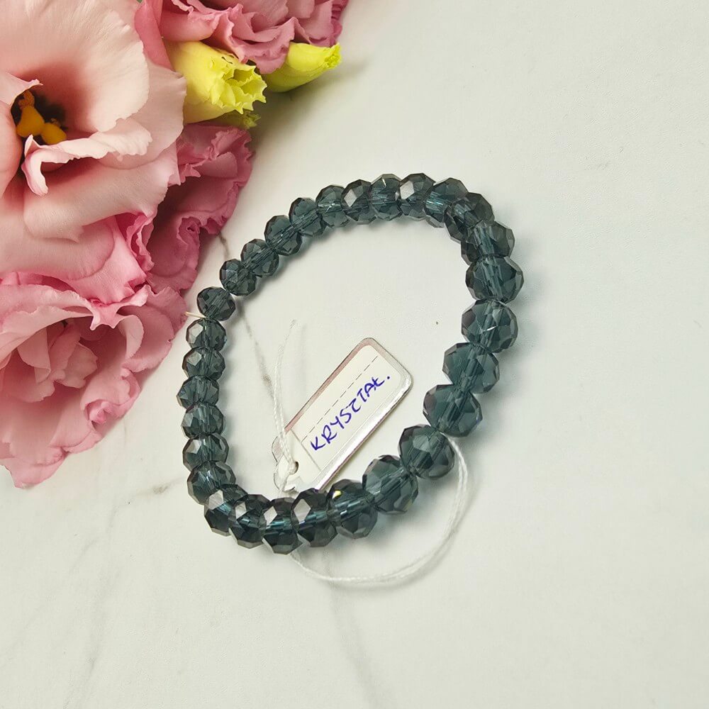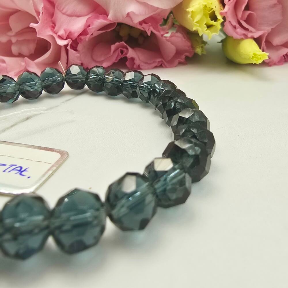 Bransoletka na gumce jubilerskiej z ciemno granatowymi szlifowanymi kryształkami. Bardzo efektowna bransoletka. Rozmiar uniwersalny .