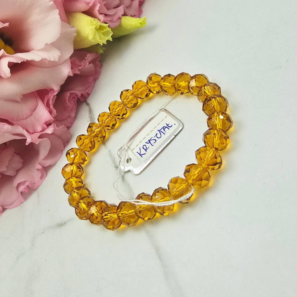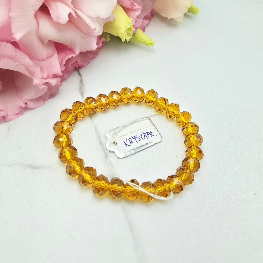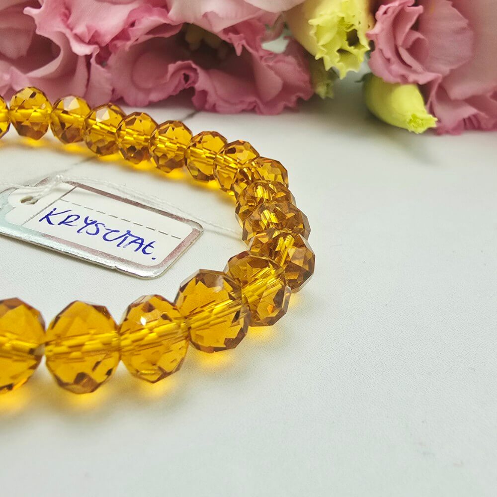 Bransoletka na gumce jubilerskiej z złotymi szlifowanymi kryształkami. Bardzo efektowna bransoletka. Rozmiar uniwersalny .