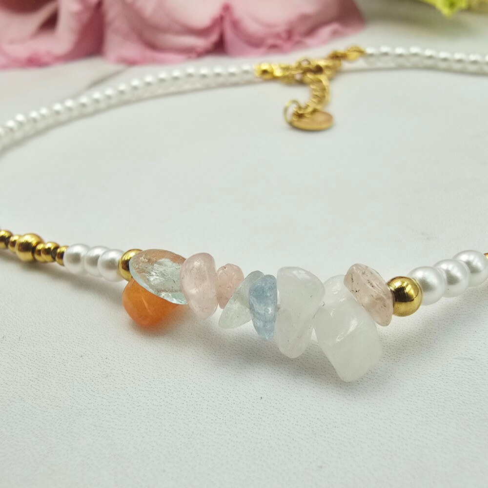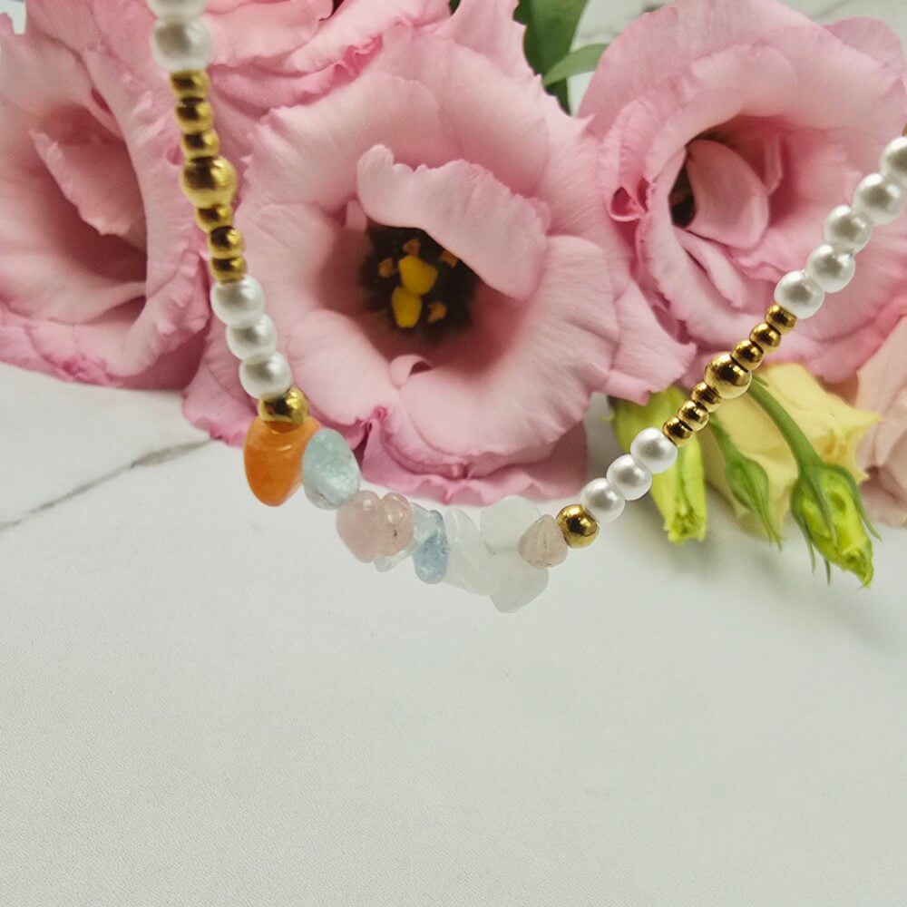 Bransoletka na stopę STAL CHIRURGICZNA perełki kolorowe kryształki