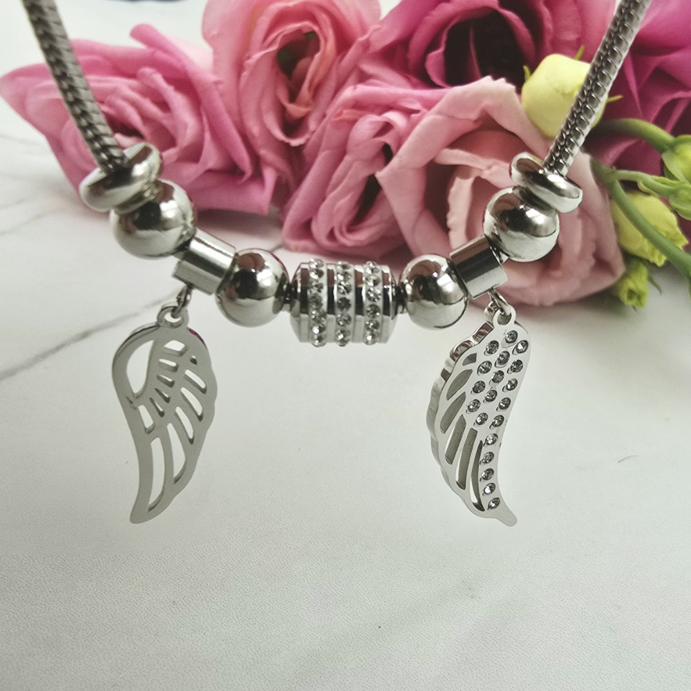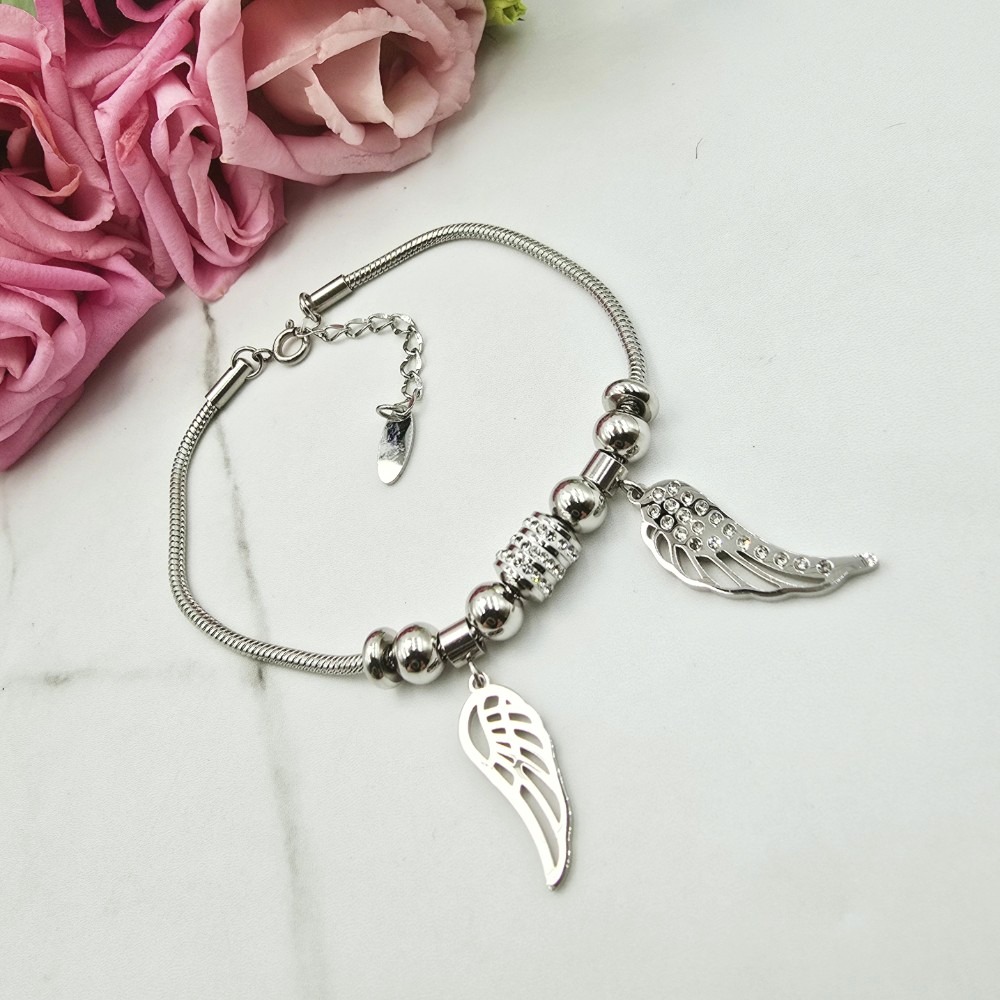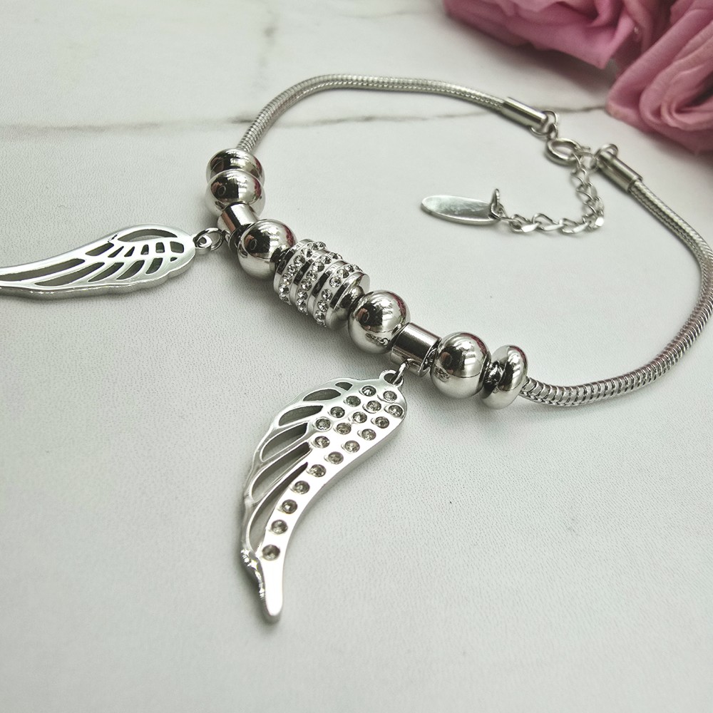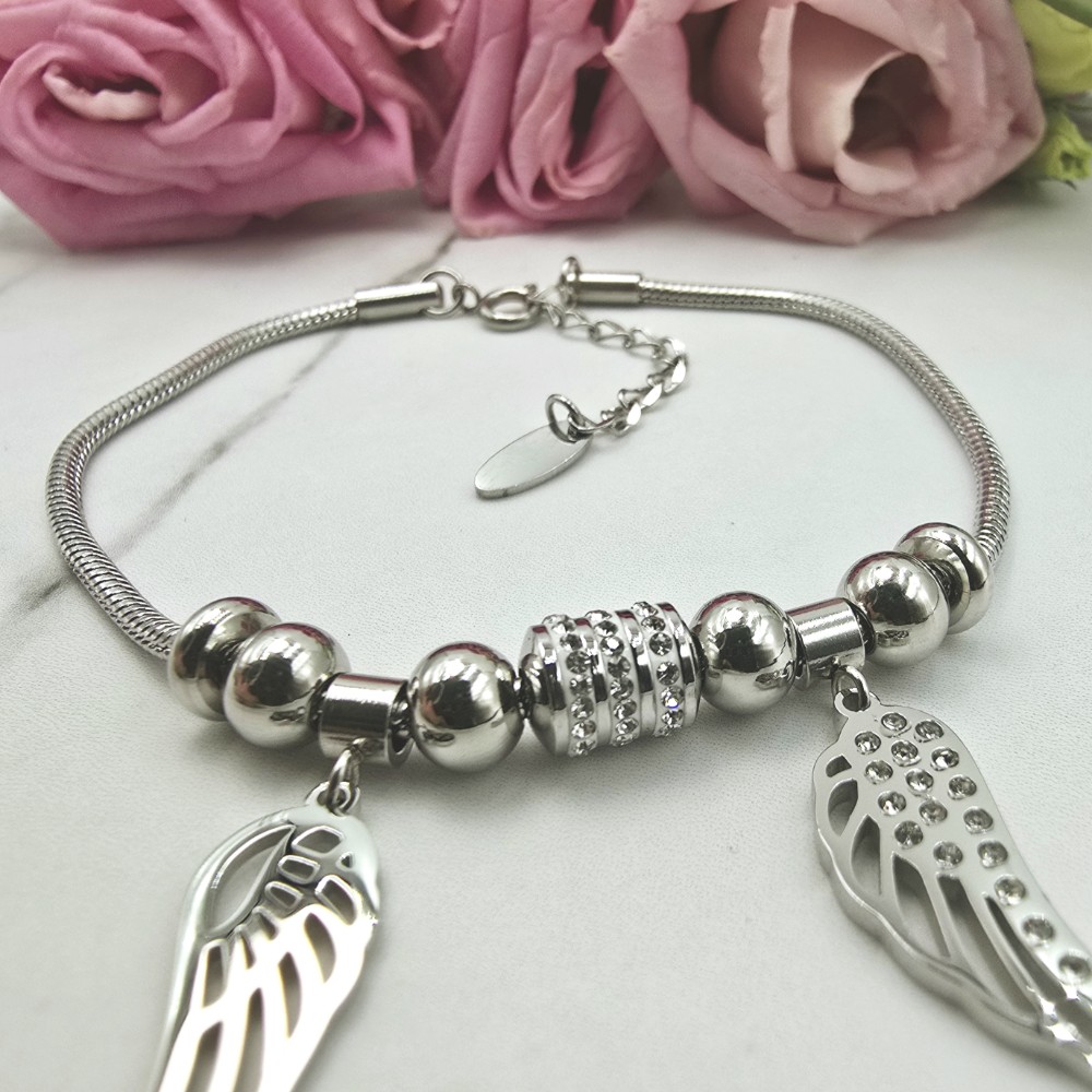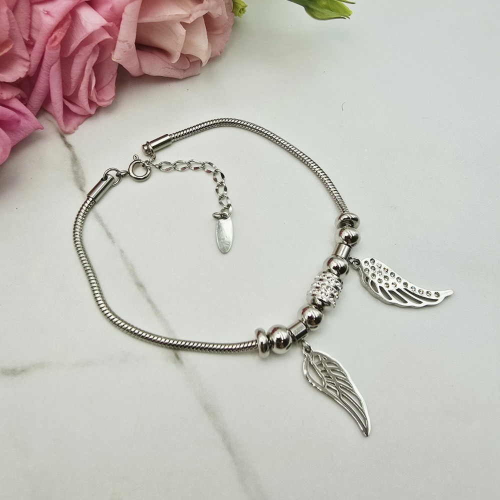 Bransoletka srebrna STAL CHIRURGICZNA CHARMS dwa skrzydła