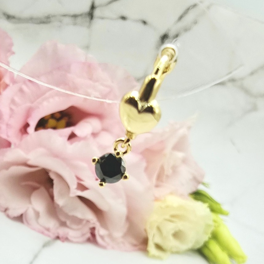 Kolczyki STAL CHIRURGICZNA bigiel czarny kryształek jasne złoto
