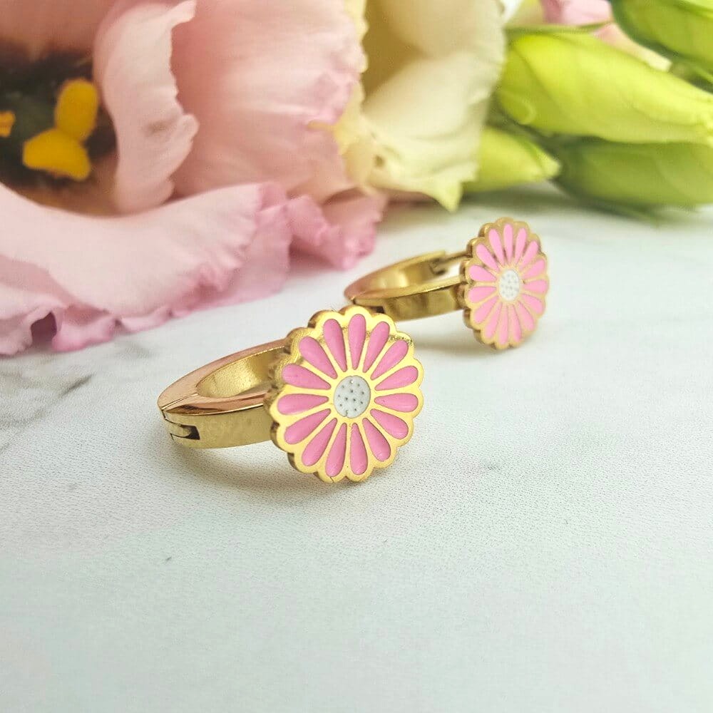 Kolczyki STAL CHIRURGICZNA bigiel dla dziewczynek różowy kwiatek