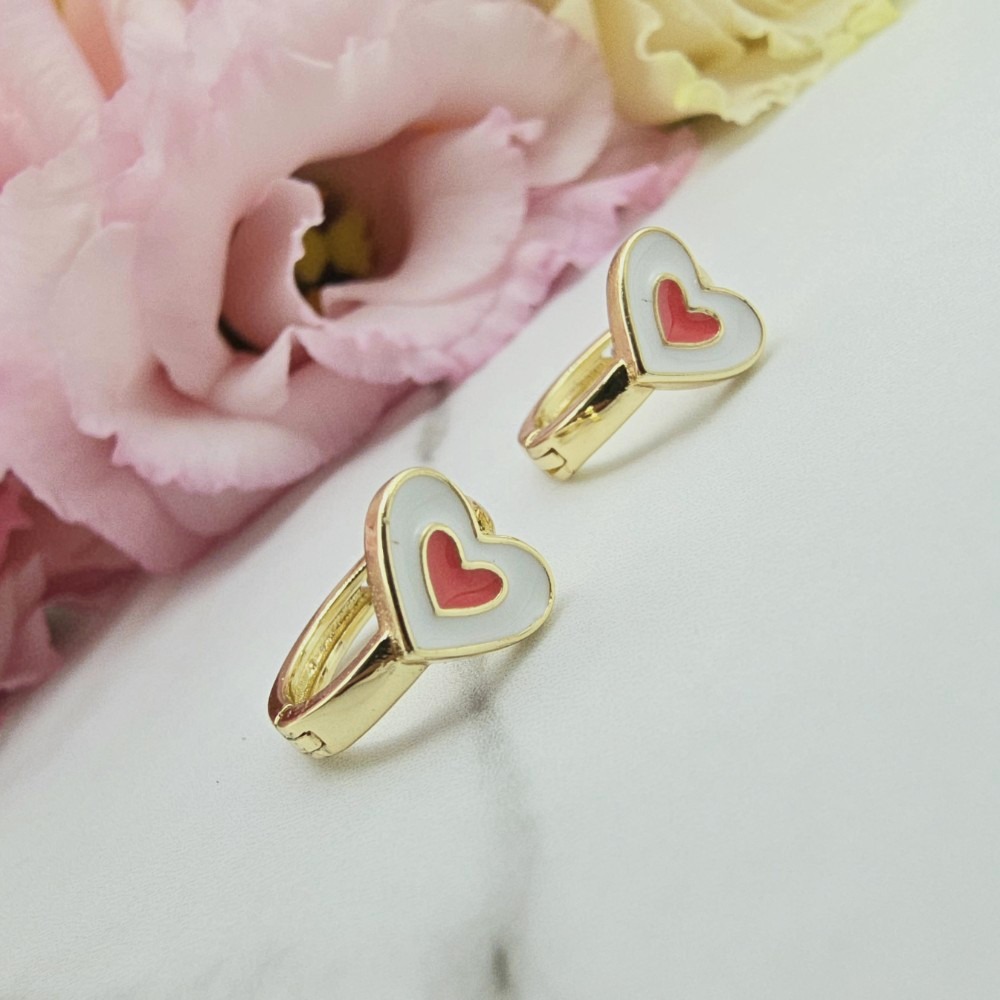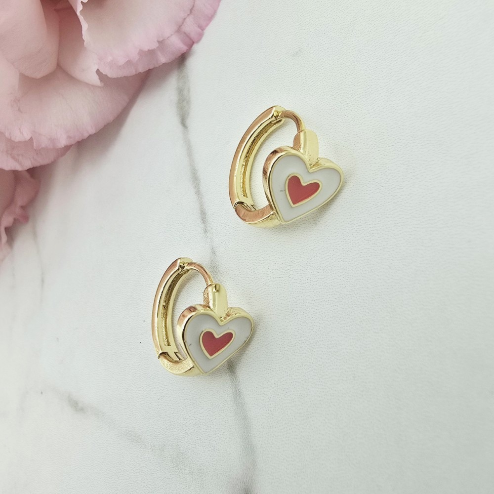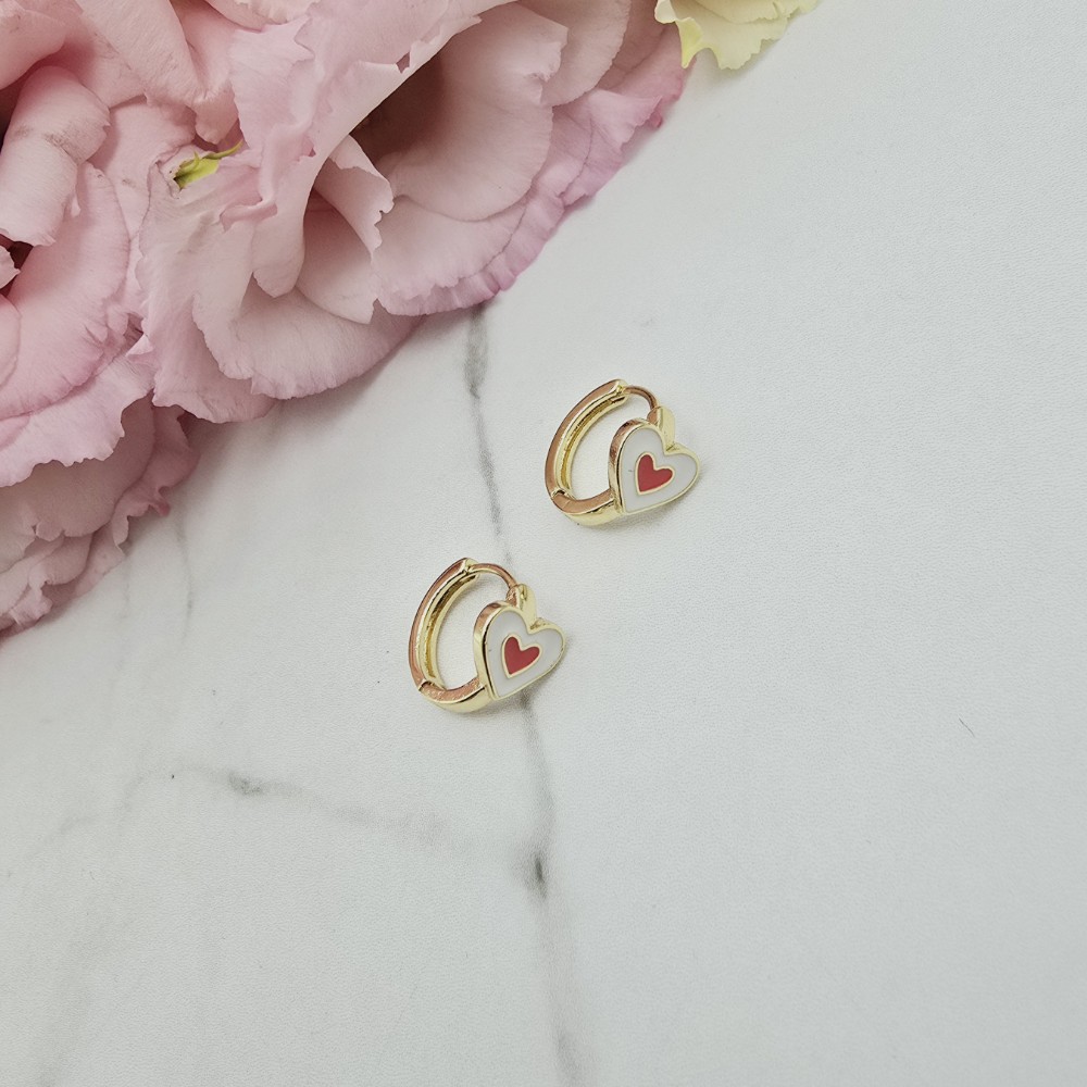 Klasyczny wzór kolczyków dla dziewczynek bigiel białe serce a w środku czerwone serduszko. Cudowne wzory i wysokiej jakości delikatne kolczyki są idealnym prezentem dla małych księżniczek! Pierwsze kolczyki dla dziewczynek zawsze powinny być ze stali chirurgicznej, która jest bezpieczna - nie uczula! Biżuteria jest antyalergiczna. Swój blask i kolor zachowa przez długi czas!! Cudowna jakość wykonania.
