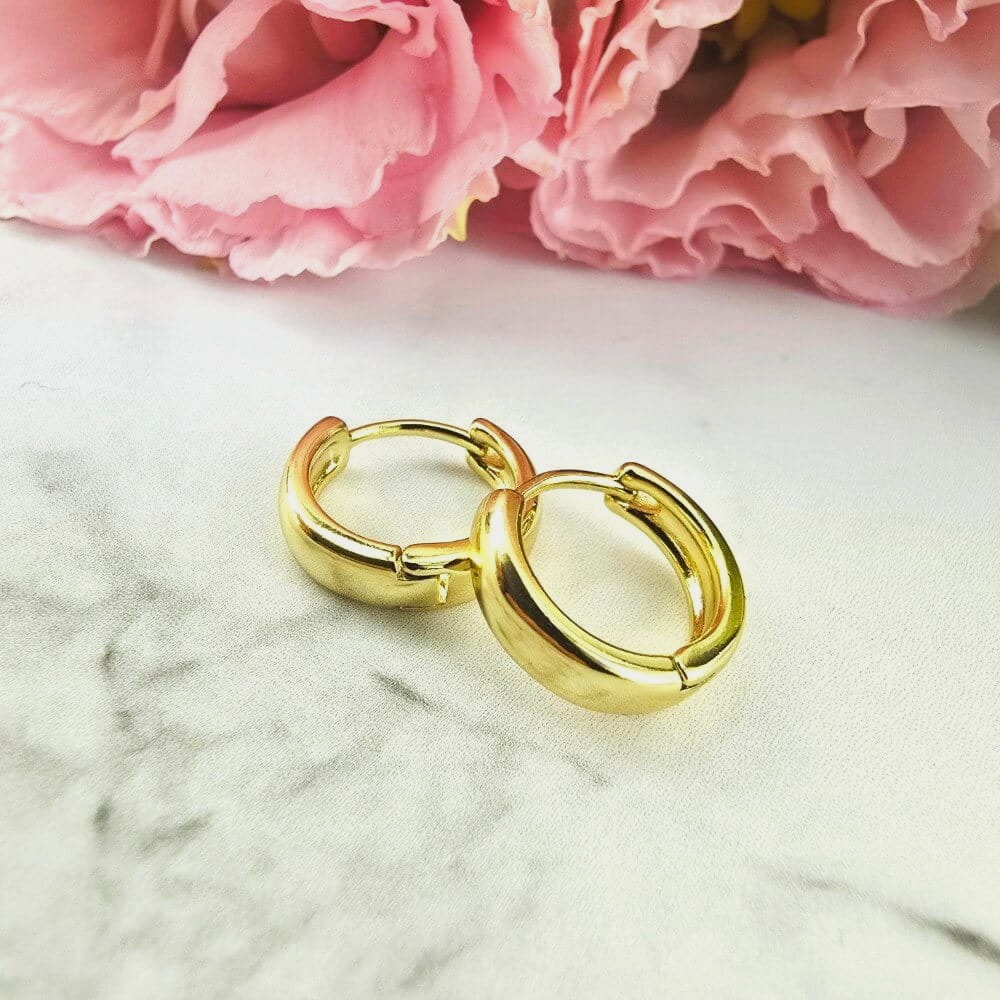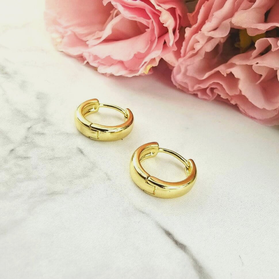 Kolczyki kółka o wielkości ok. 1,5 cm, szerokość 0,3 cm. Delikatne kolczyki średniej wielkości. UWAGA! możliwość dogięcia drucika aby lepiej się zapinały. Jaśniejszy odcień złota.
