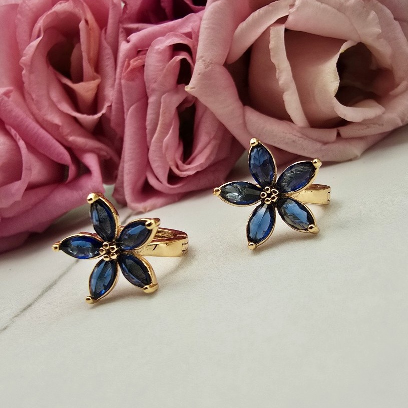 Kolczyki STAL CHIRURGICZNA bigiel kwiatki z granatowymi kryształkami