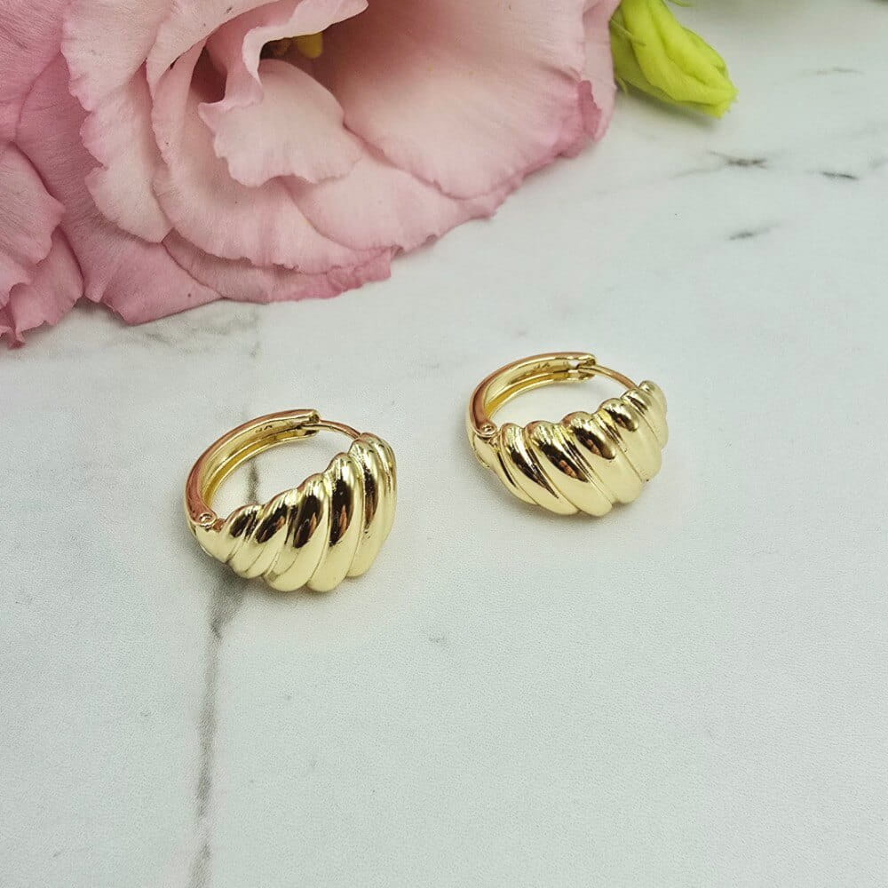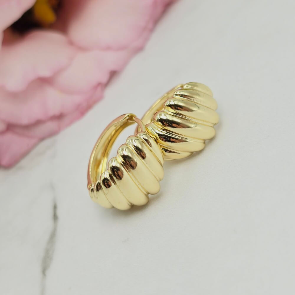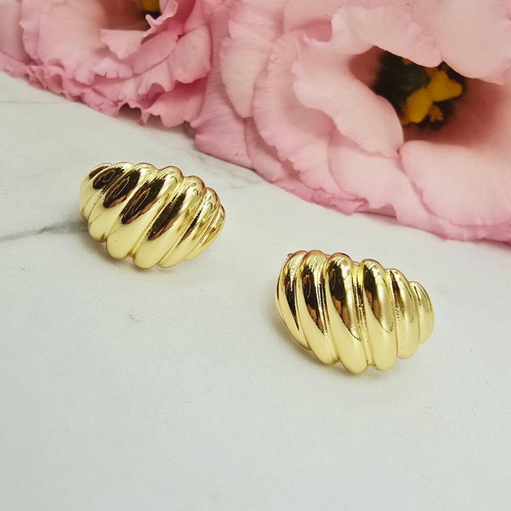 Wzór w kształcie muszli. Delikatne kolczyki średniej wielkości. Wielkość ok 1,5 cm.