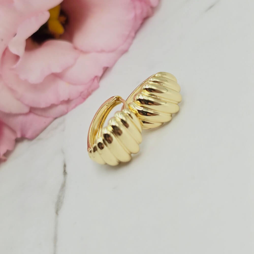Piękne kolczyki bigiel w kształcie efektownych muszelek. Kolczyki z kolekcji StaloweLOVE w kolorze jasno złotym.
