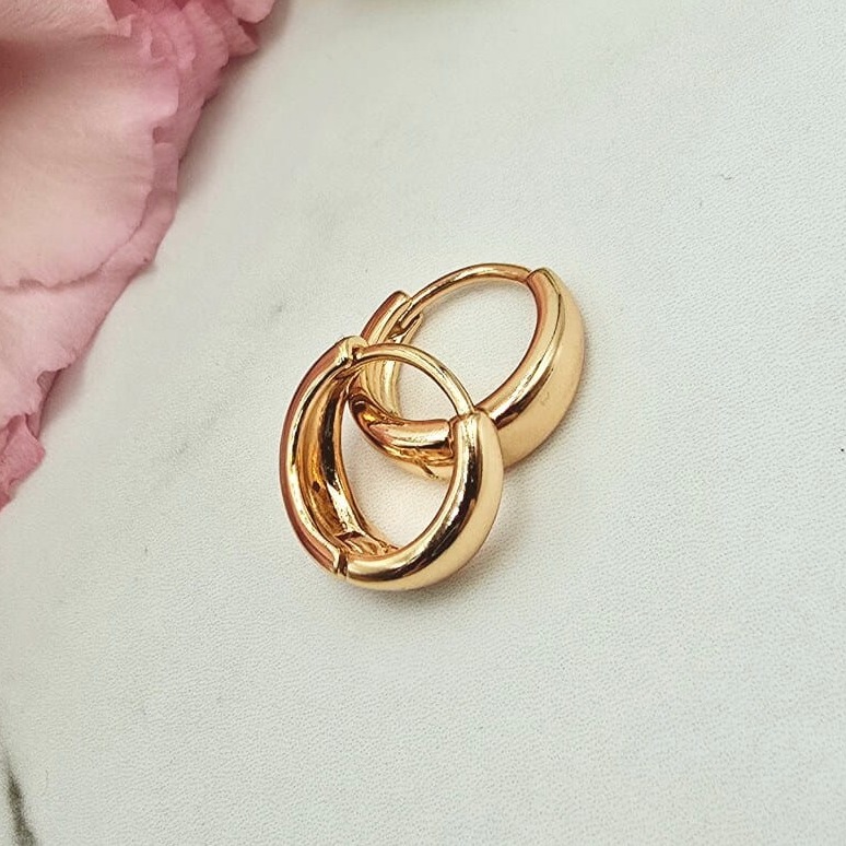 Bardzo popularny klasyczny wzór kolczyków okrągłych sam bigiel szerszy u dołu. Kolczyki z kolekcji StaloweLOVE wykonane z wysokiej jakości stali chirurgicznej 316L w kolorze złotym.