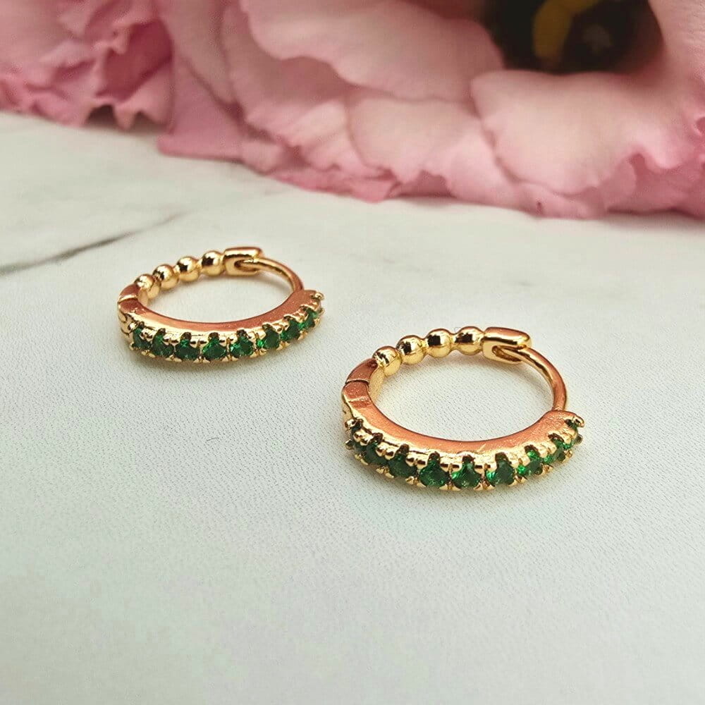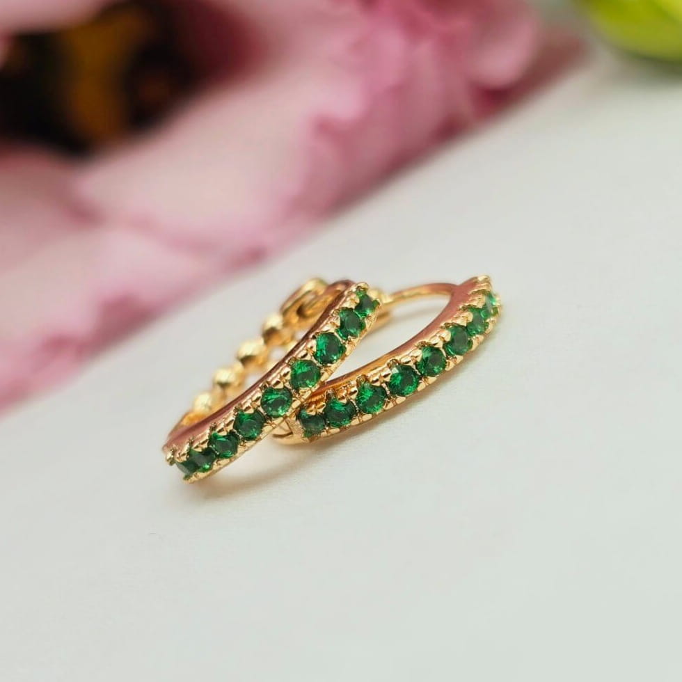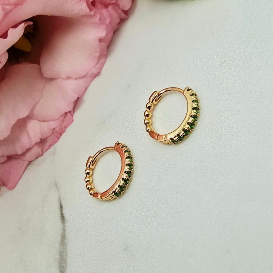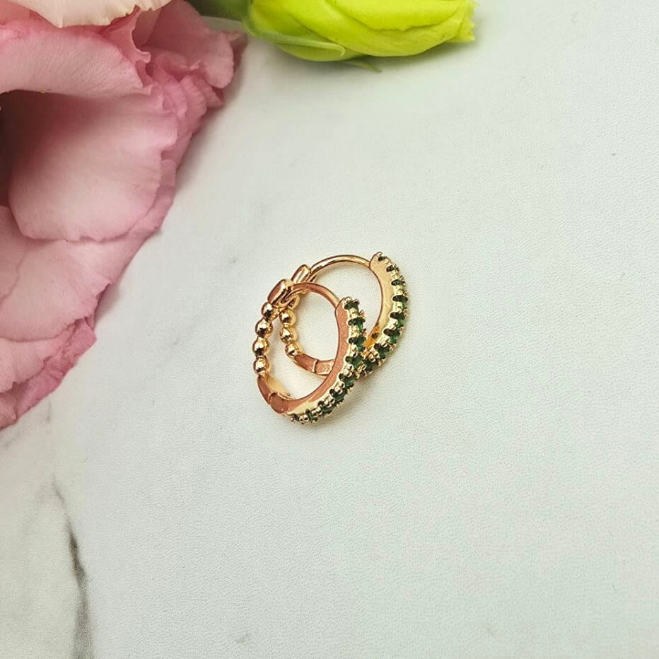 Bardzo popularny klasyczny wzór kolczyków bigiel z przepięknymi zielonymi cyrkoniami z przodu. Cudownie lśnią w słońcu. Kolczyki z kolekcji StaloweLOVE wykonane z wysokiej jakości stali chirurgicznej 316L w złotym kolorze.