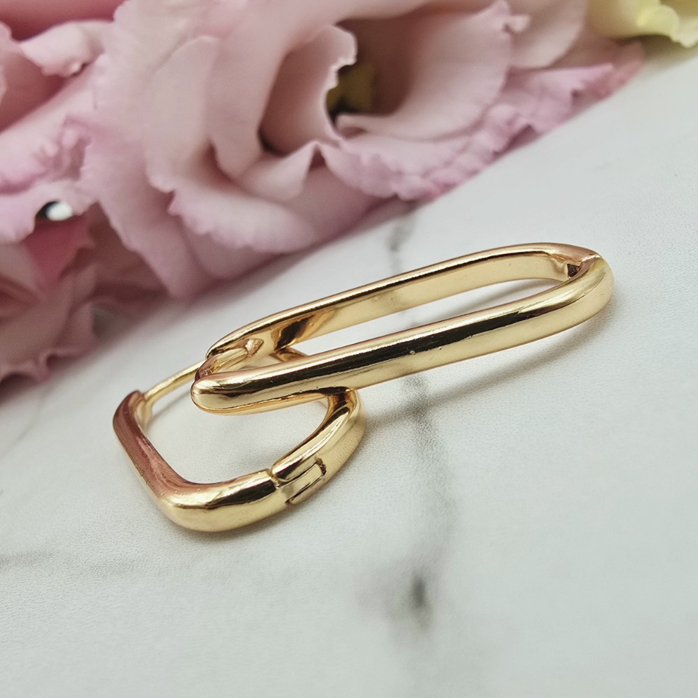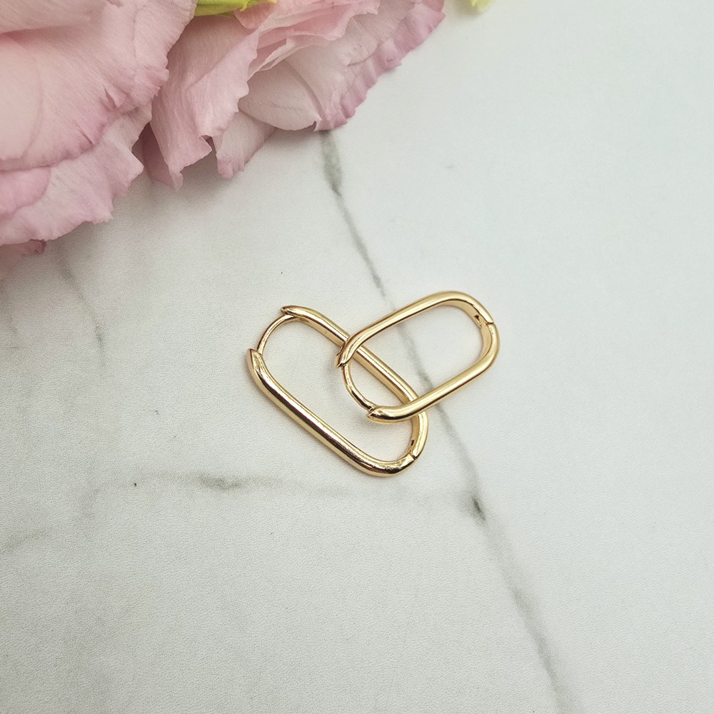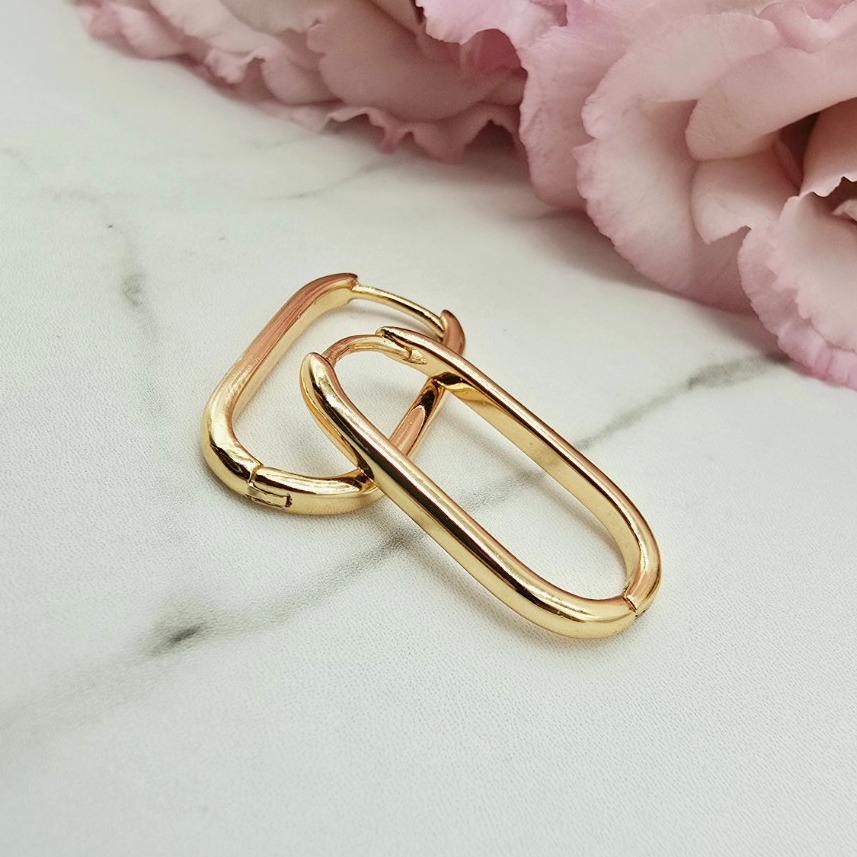 Bardzo popularny klasyczny wzór kolczyków w kształcie elipsy - ażurowy zaokrąglony prostokąt. Zapięcie zatrzaskowe bigiel. Kolczyki z kolekcji StaloweLOVE wykonane z wysokiej jakości stali chirurgicznej 316L w złotym kolorze.