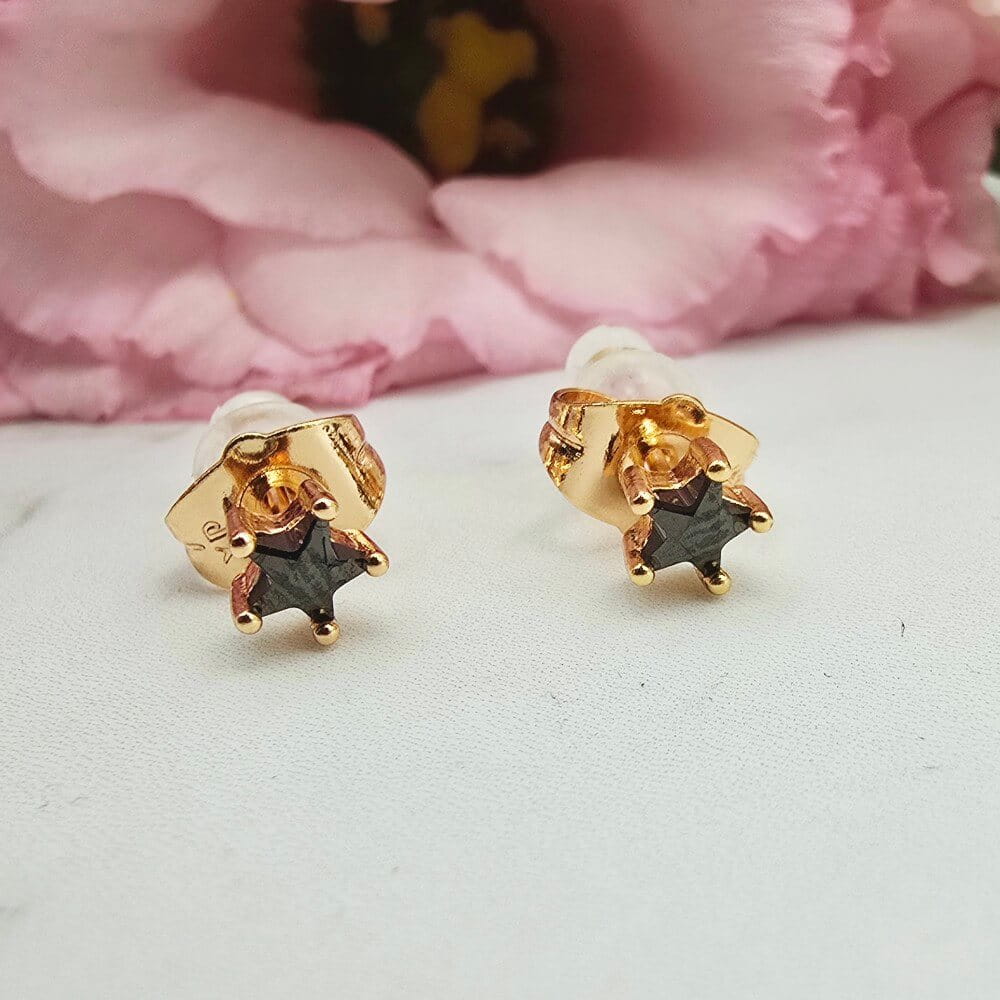 Klasyczny wzór kolczyków delikatna gwiazdka czarny kryształek. Super wygląda na uchu! Kolczyki gwiazdka 0,5 cm.