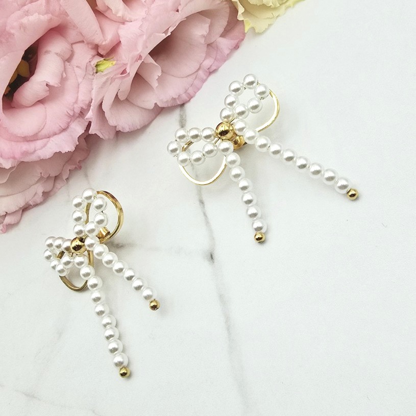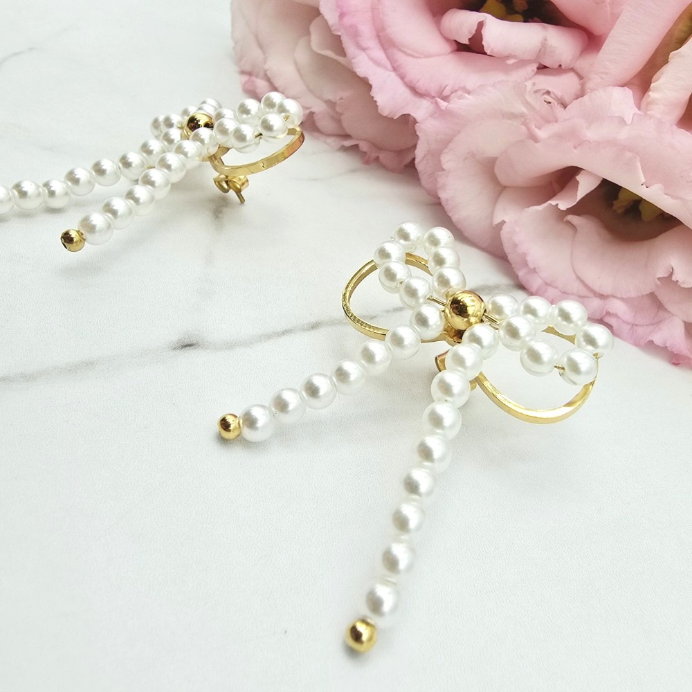 Kolczyki STAL CHIRURGICZNA kokardka wiszące perełki