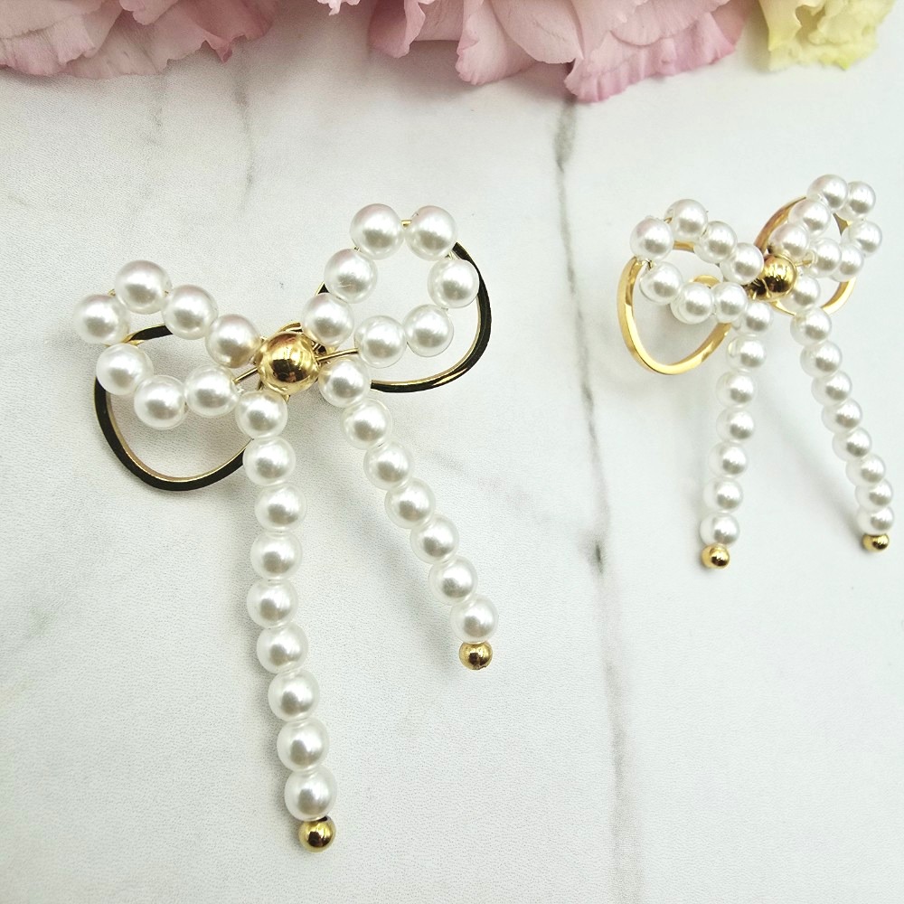 Kolczyki stal chirurgiczna kokardka wiszące perełki
