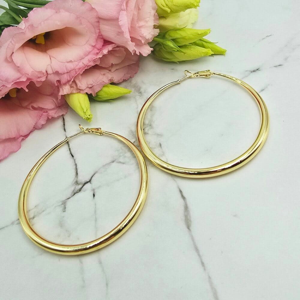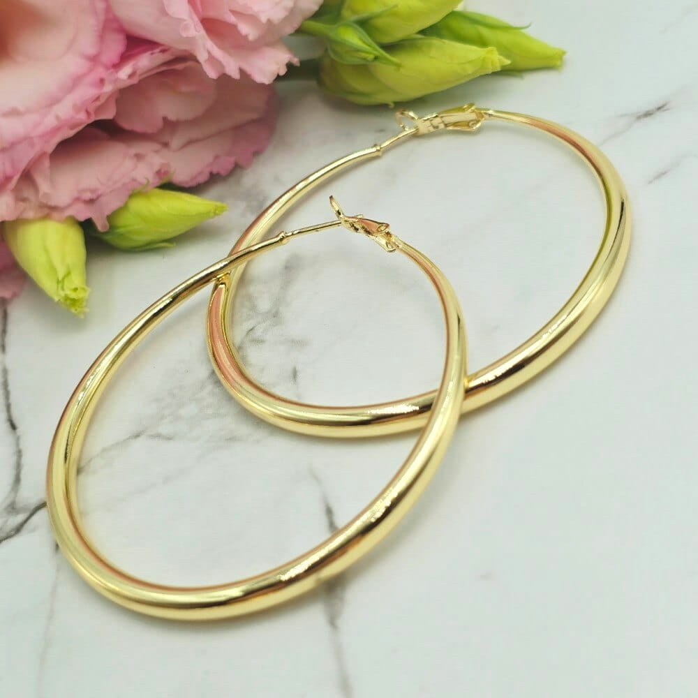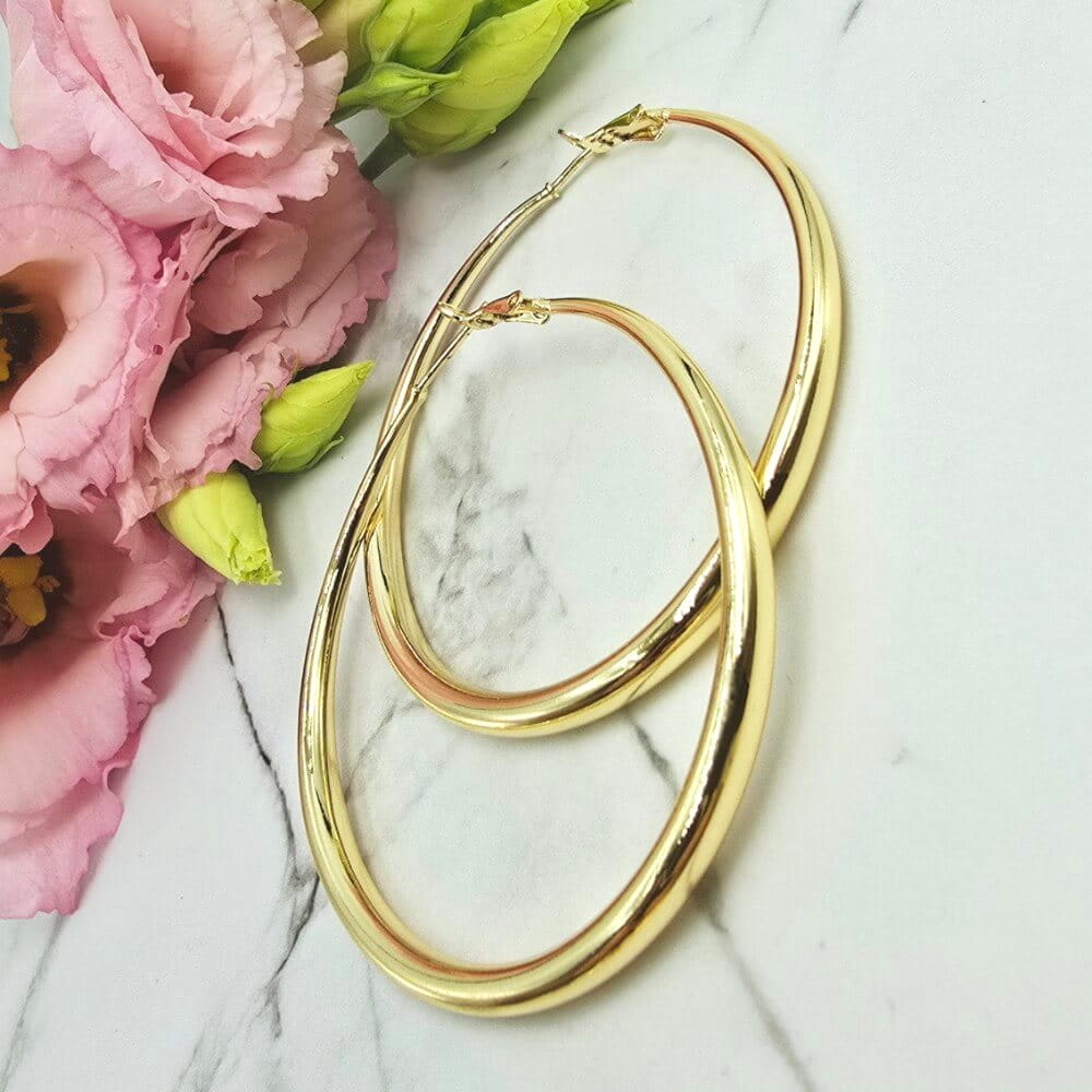 Piękne szersze kolczyki koła dużej wielkości pogrubiane ku dołowi. Bardzo modny klasyczny wzór noszony przez wiele gwiazd i celebrytów. Wygodnie zapięcie. Kolczyki z kolekcji StaloweLOVE wykonane z wysokiej jakości stali chirurgicznej 316L zwanej również stalą nierdzewną/szlachetną która: nie zmienia koloru, nie reaguje z wodą i nie uczula!! Jasny odcień zlota.