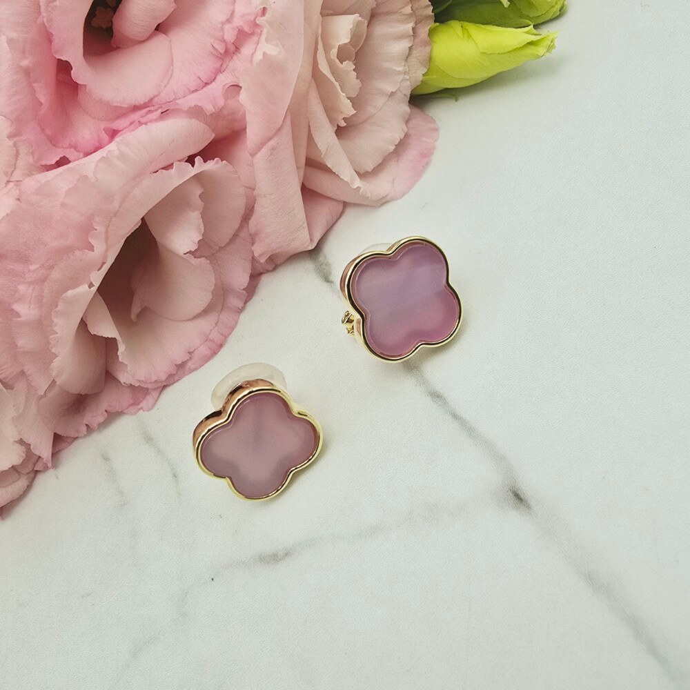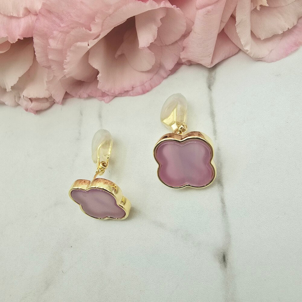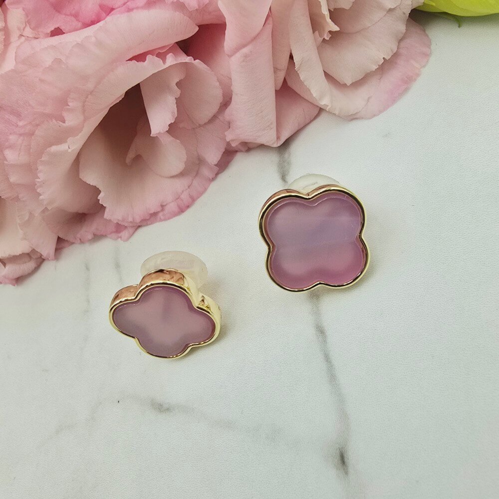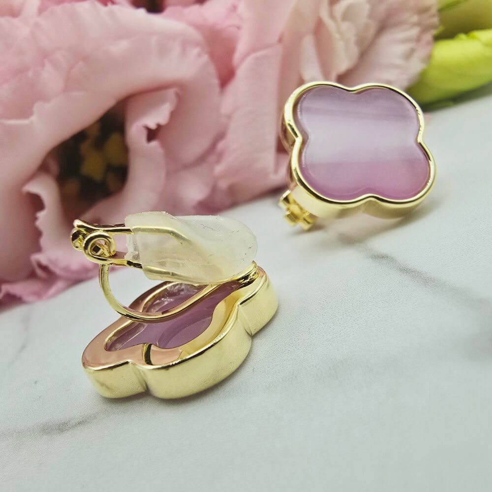 Oryginalny wzór kolczyków w kształcie szerokiej różowej koniczyny - kolczyki zapięcie klipsy . Kolczyki z kolekcji StaloweLOVE wykonane z wysokiej jakości stali chirurgicznej 316L w złotym kolorze możesz nosić na co dzień non stop!!