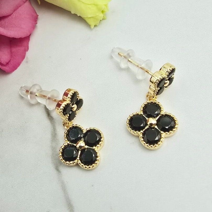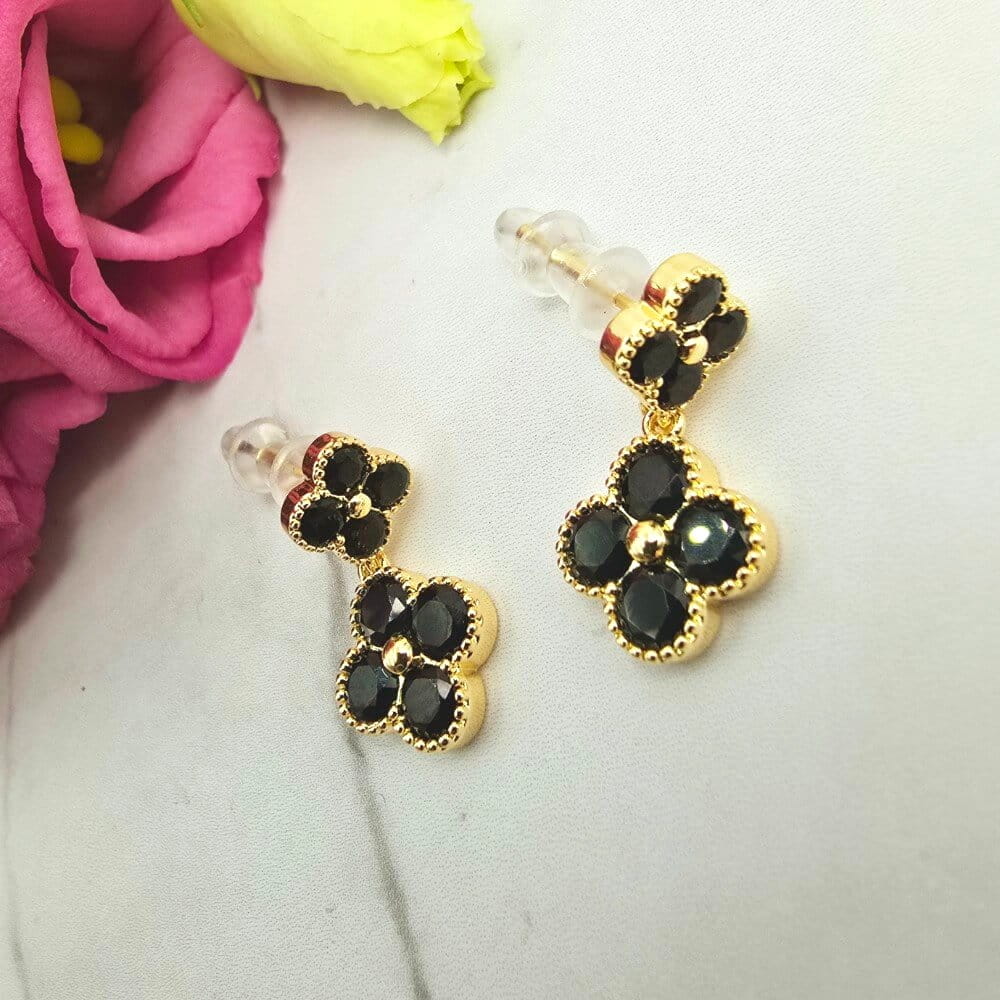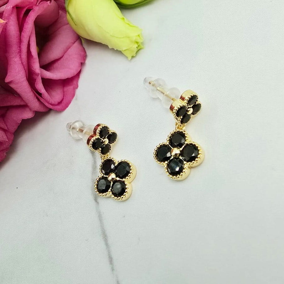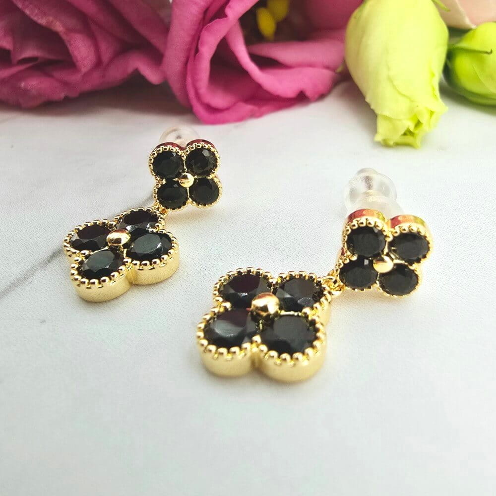 Kolczyki STAL CHIRURGICZNA koniczynki czarny kryształek