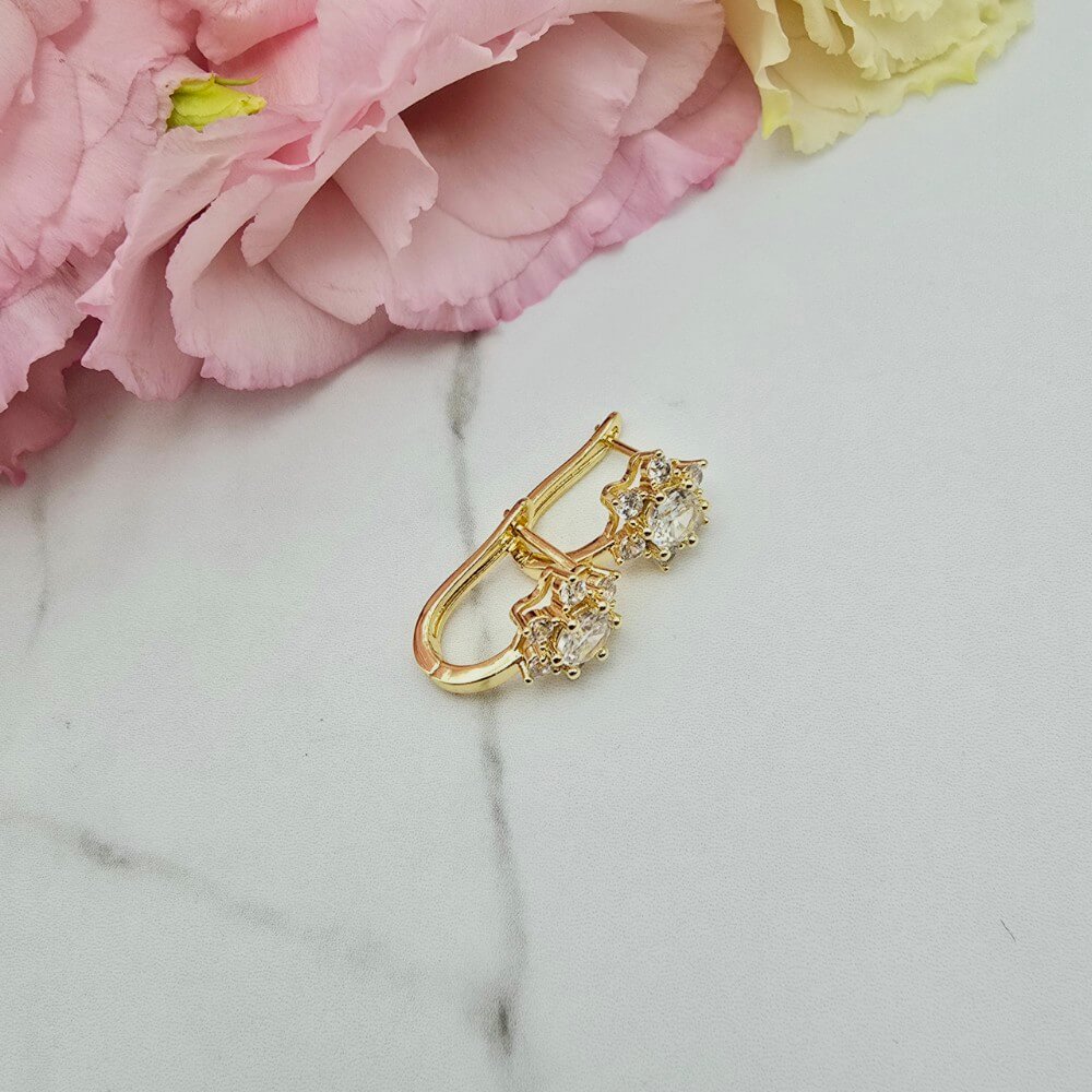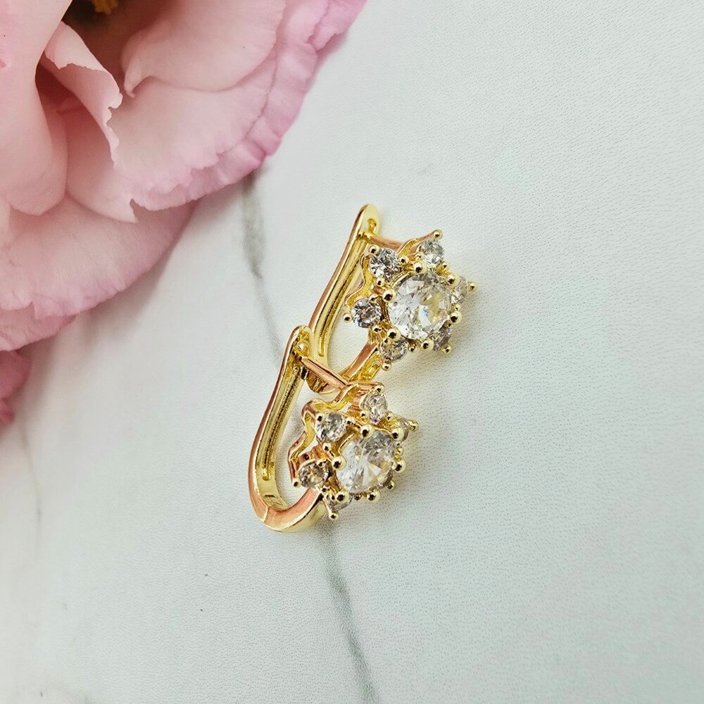 Kolczyki STAL CHIRURGICZNA kwiatek kryształek cyrkonie jasne złoto