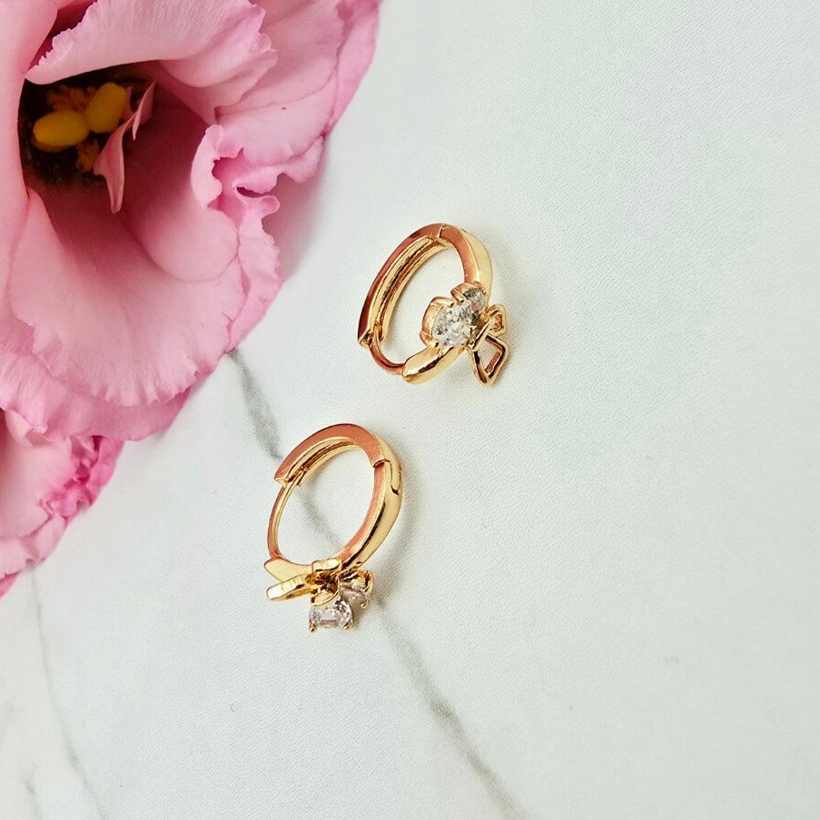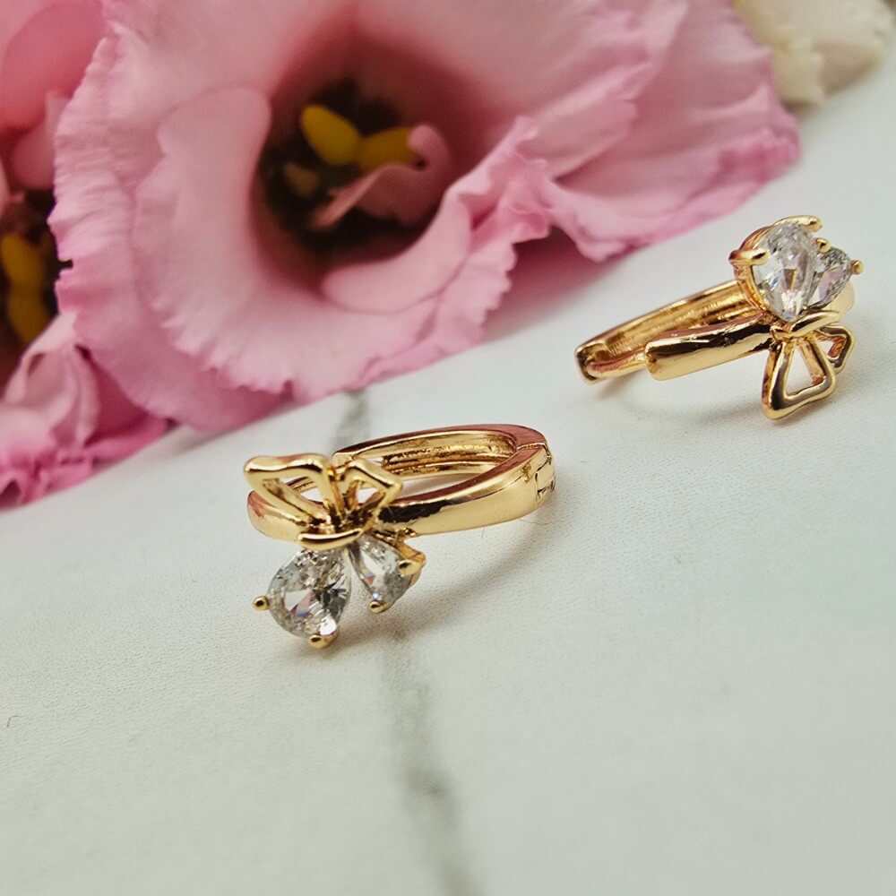 Piękne kolczyki w kształcie efektownych małych motylków ozdobionych jasnym kryształkiem. Kolczyki z kolekcji StaloweLOVE w kolorze złotym.