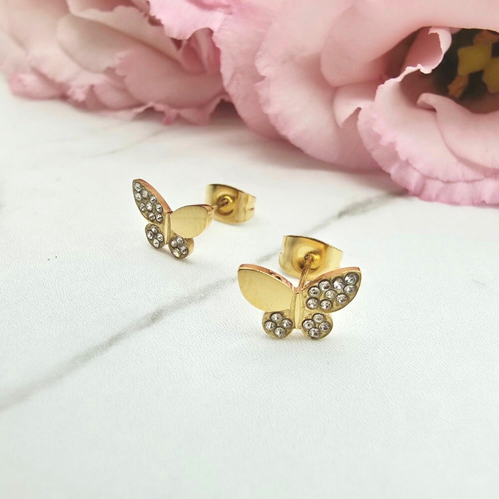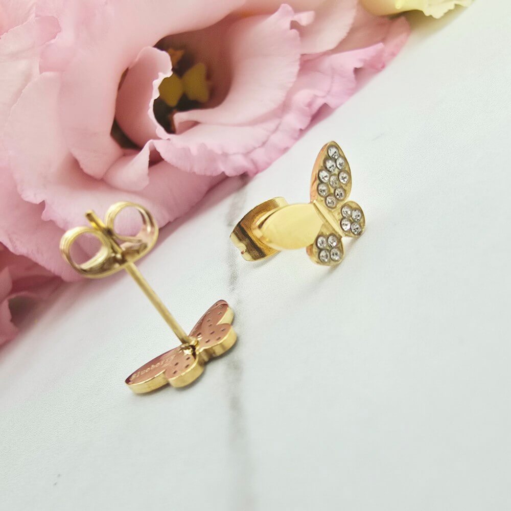 Kolczyki STAL CHIRURGICZNA motylek cyrkonie