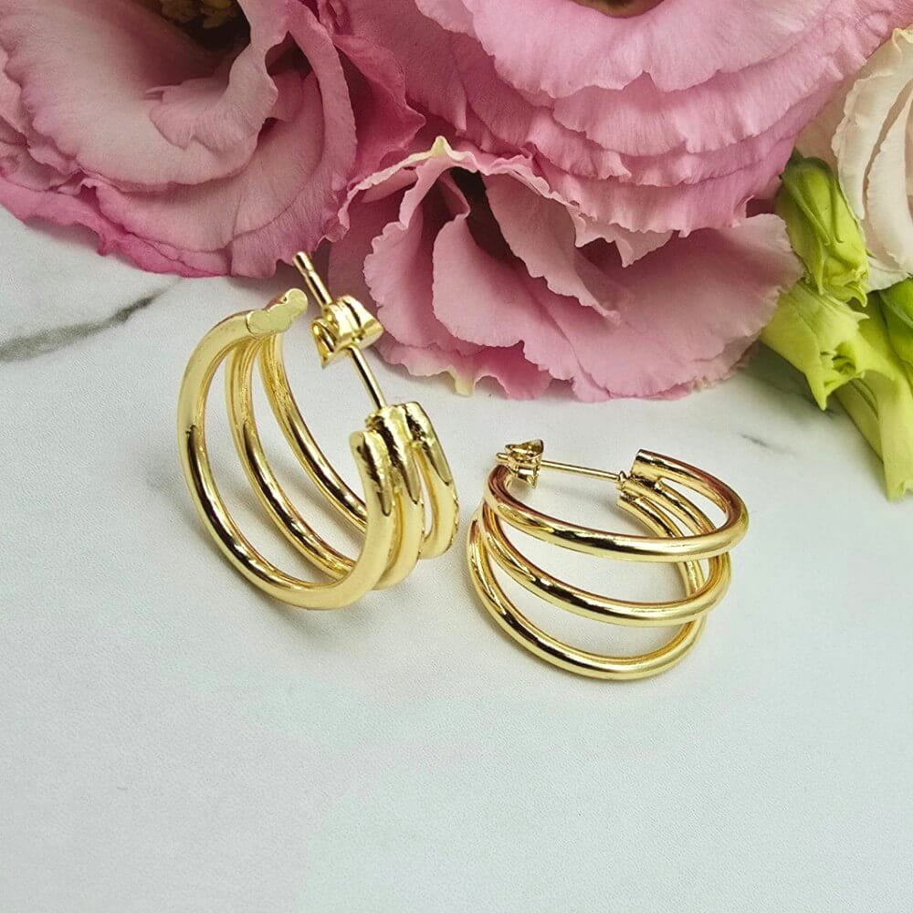 Kolczyki STAL CHIRURGICZNA potrójne kółka niedomknięte 2 cm jasne złoto