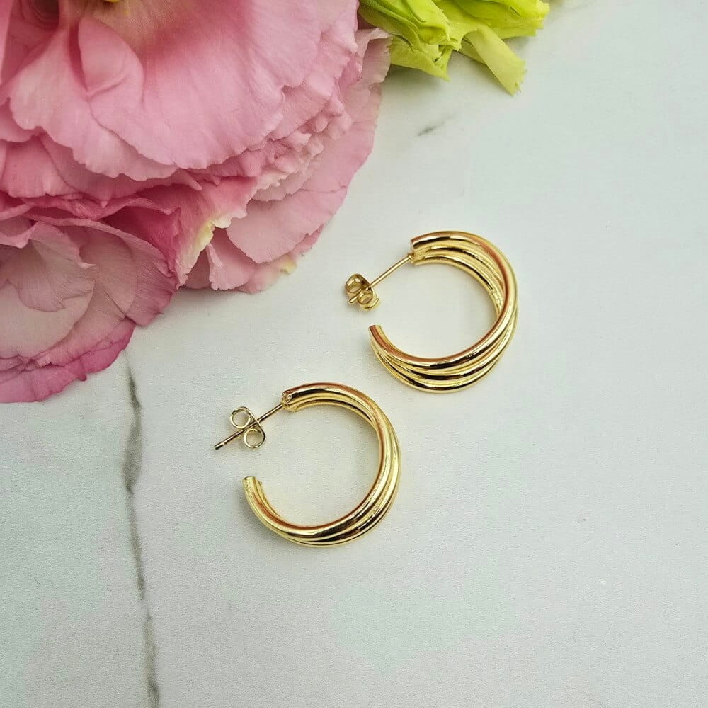 Piękne kolczyki składające z trzech drucików zaokrąglonych w nie pełne kółko. Kolczyki z kolekcji StaloweLOVE wykonane z wysokiej jakości stali chirurgicznej 316L zwanej również stalą nierdzewną/szlachetną która: nie zmienia koloru, nie reaguje z wodą i nie uczula!! Jaśniejszy odcień złota.