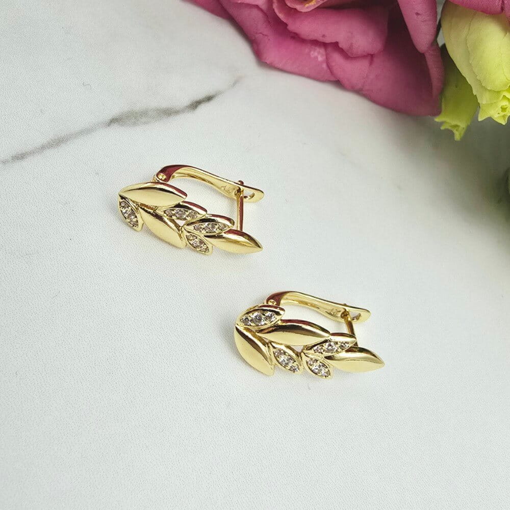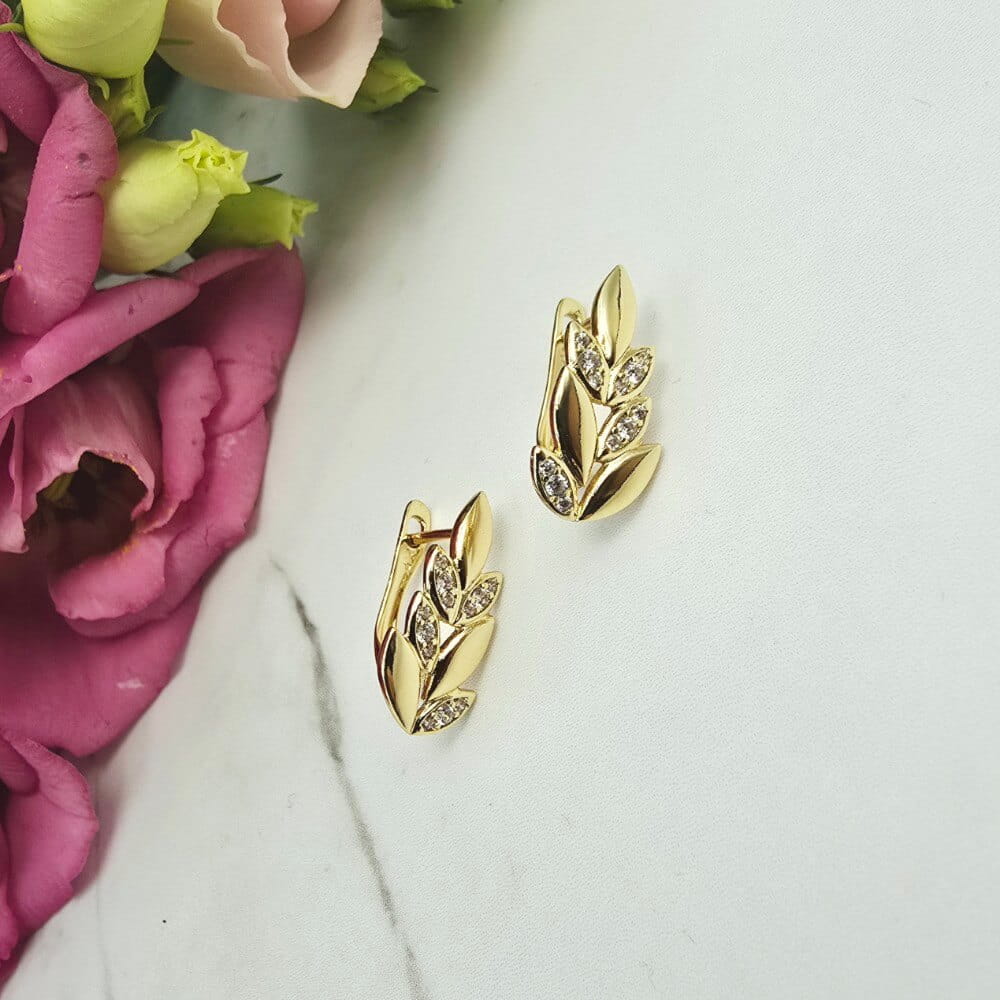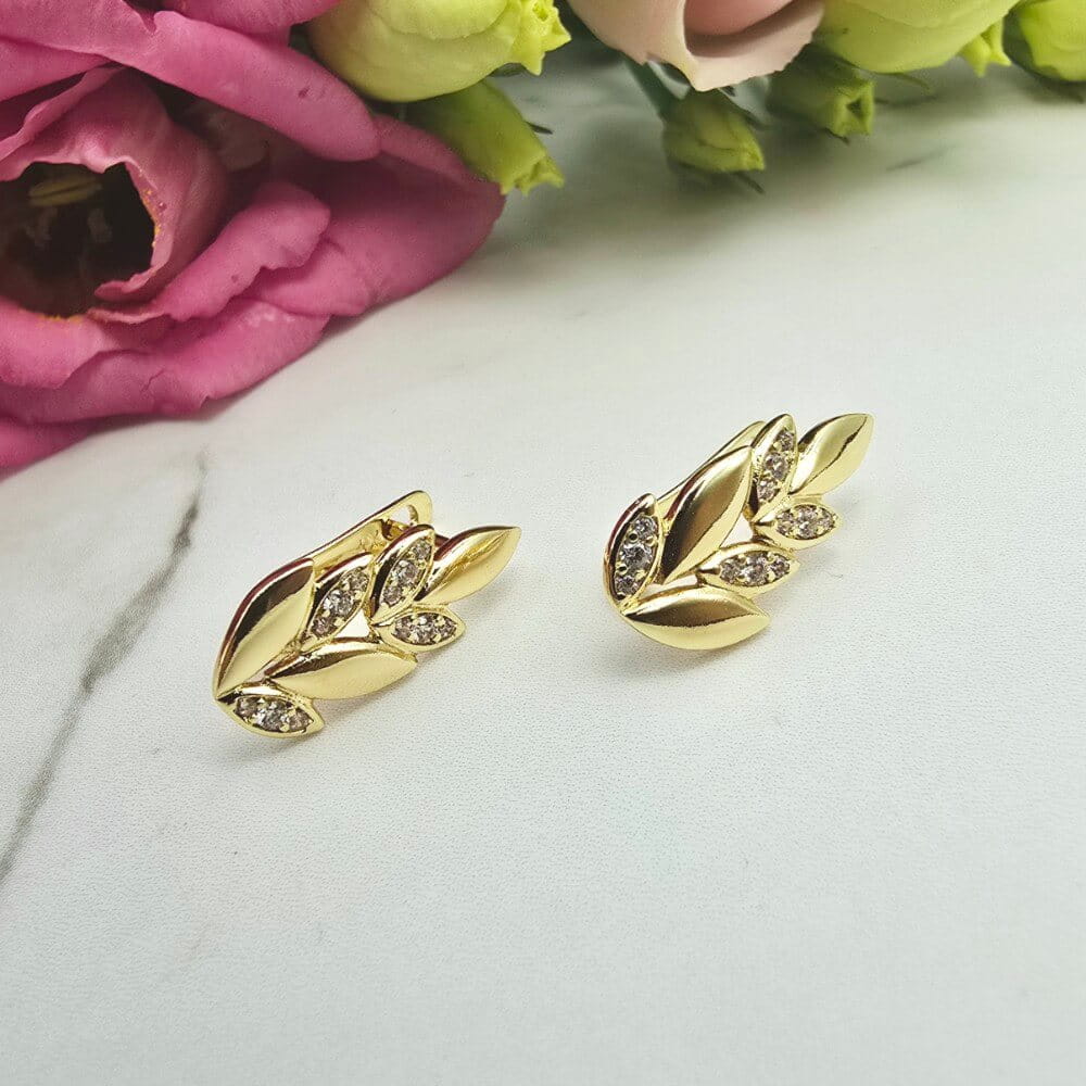 Cudowne i delikatne kolczyki gałązki ozdobione cyrkoniami. Zapięcie zatrzask. Bardzo efektowne kolczyki. Kolczyki z kolekcji StaloweLOVE wykonane z wysokiej jakości stali chirurgicznej 316L w jasno złotym kolorze.