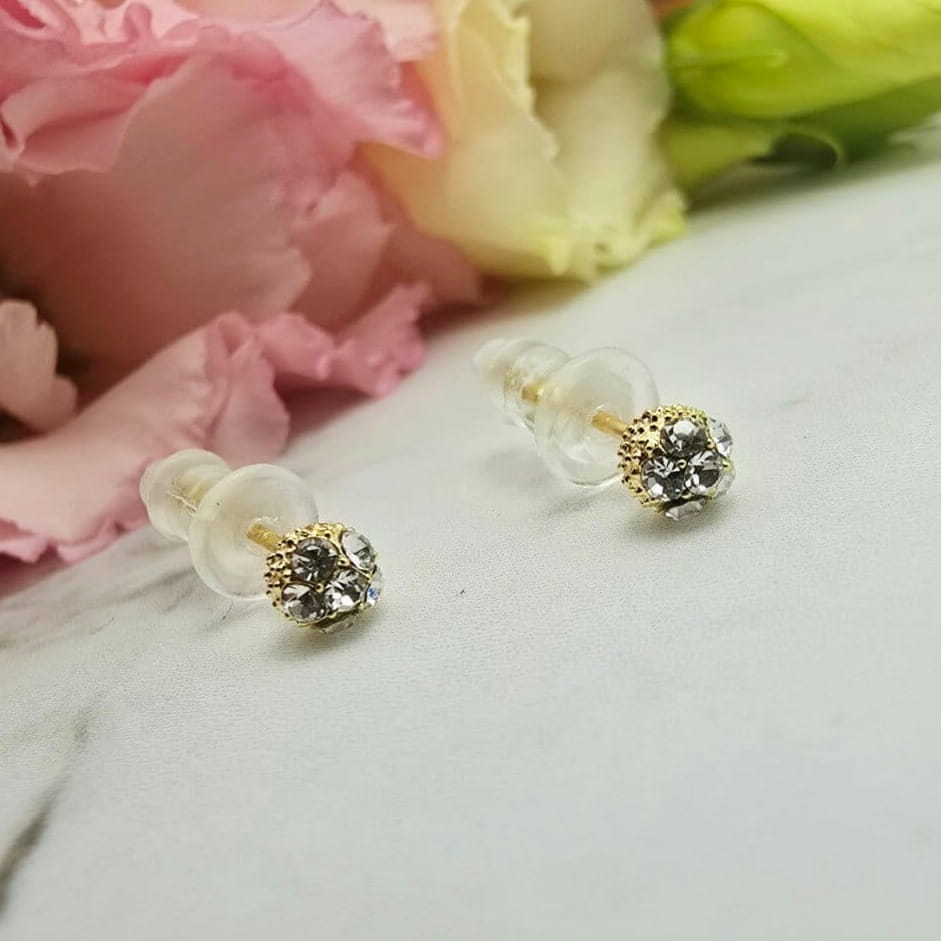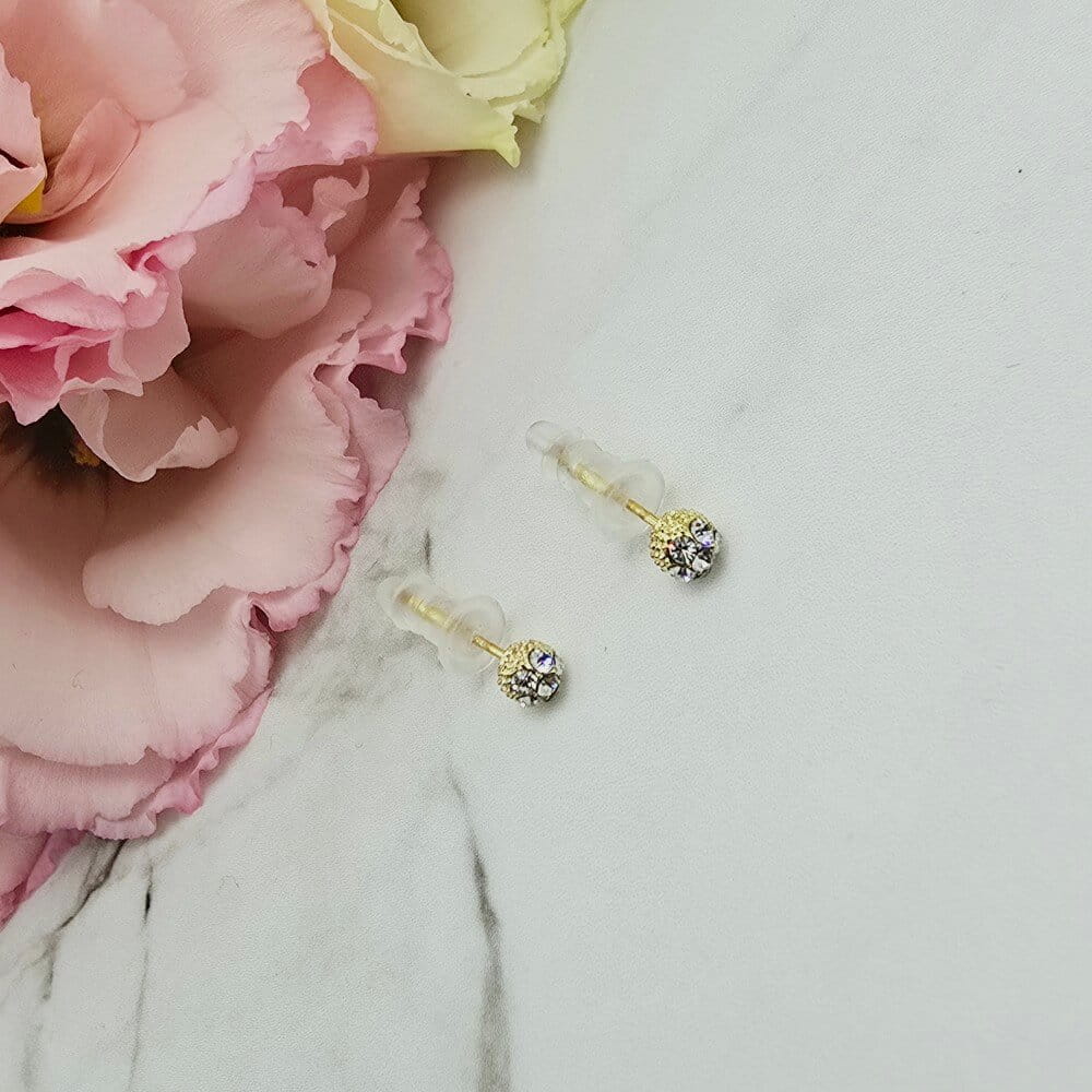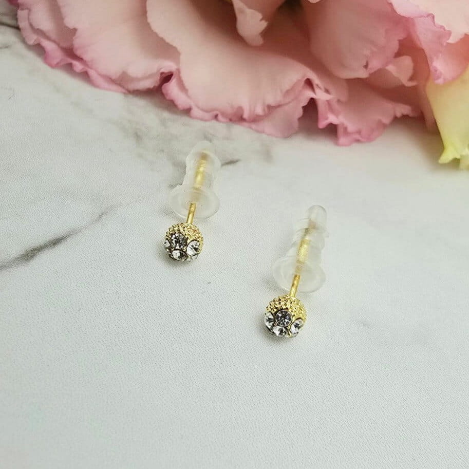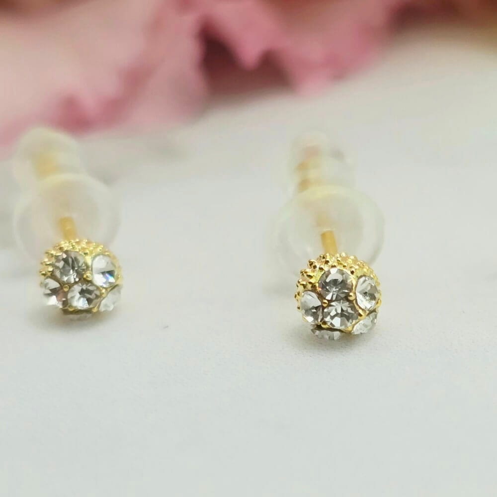 Piękne i delikatne kolczyki kulki złote wysadzane jasnymi cyrkoniami z kolekcji StaloweLOVE.