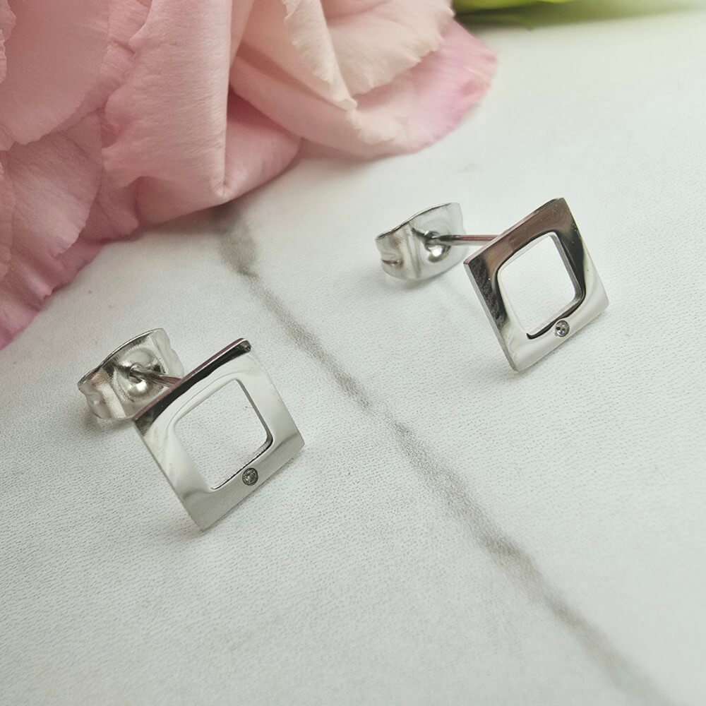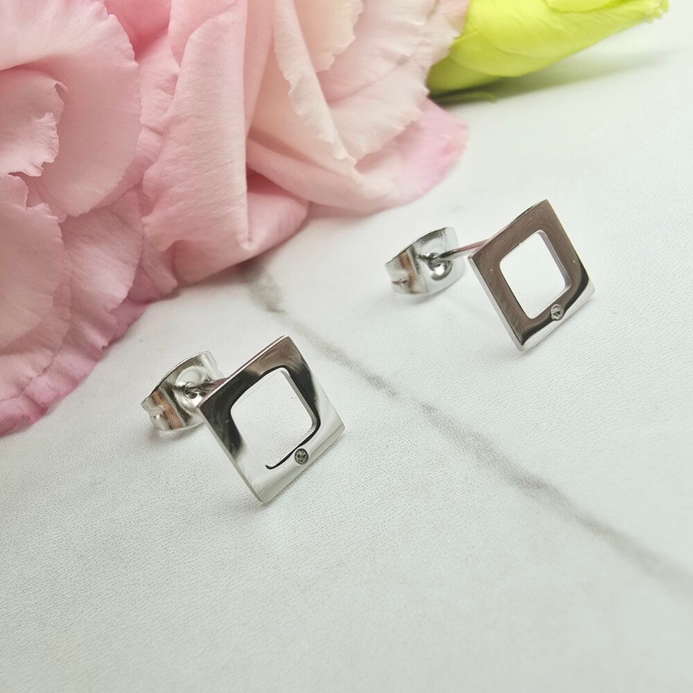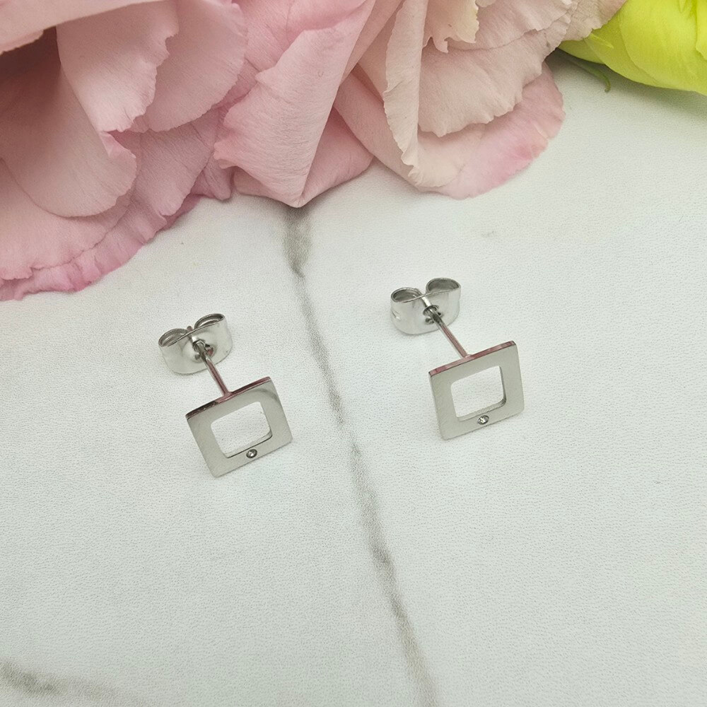 Kolczyki srebrne STAL CHIRURGICZNA kwadrat cyrkonia