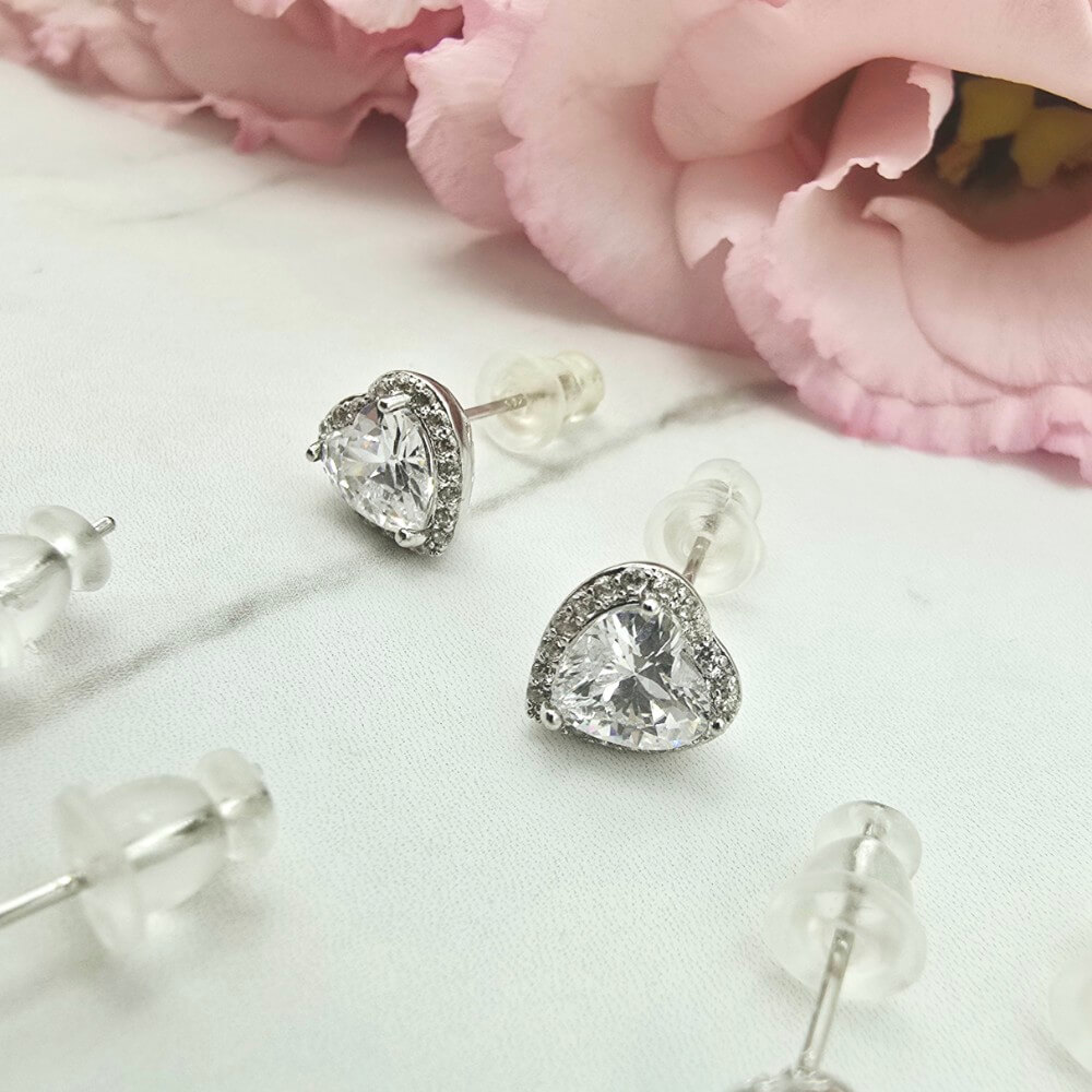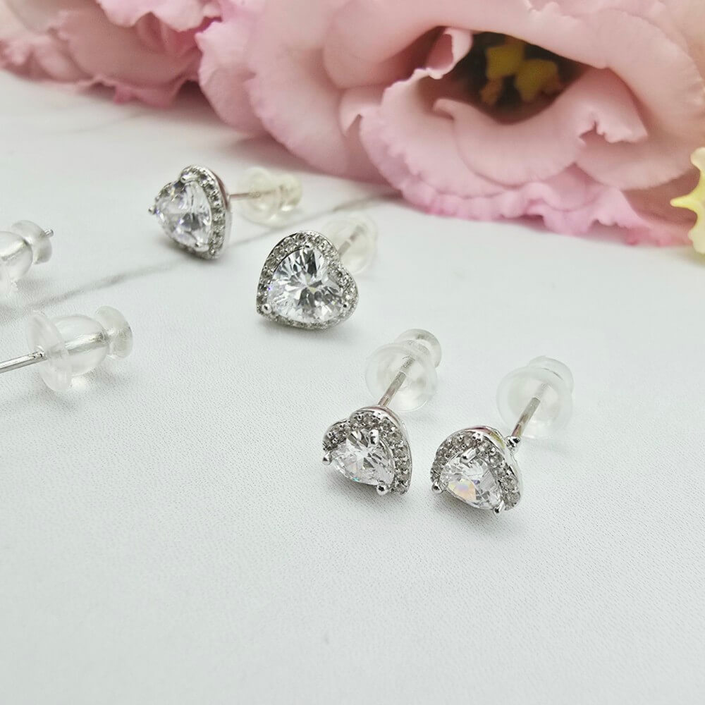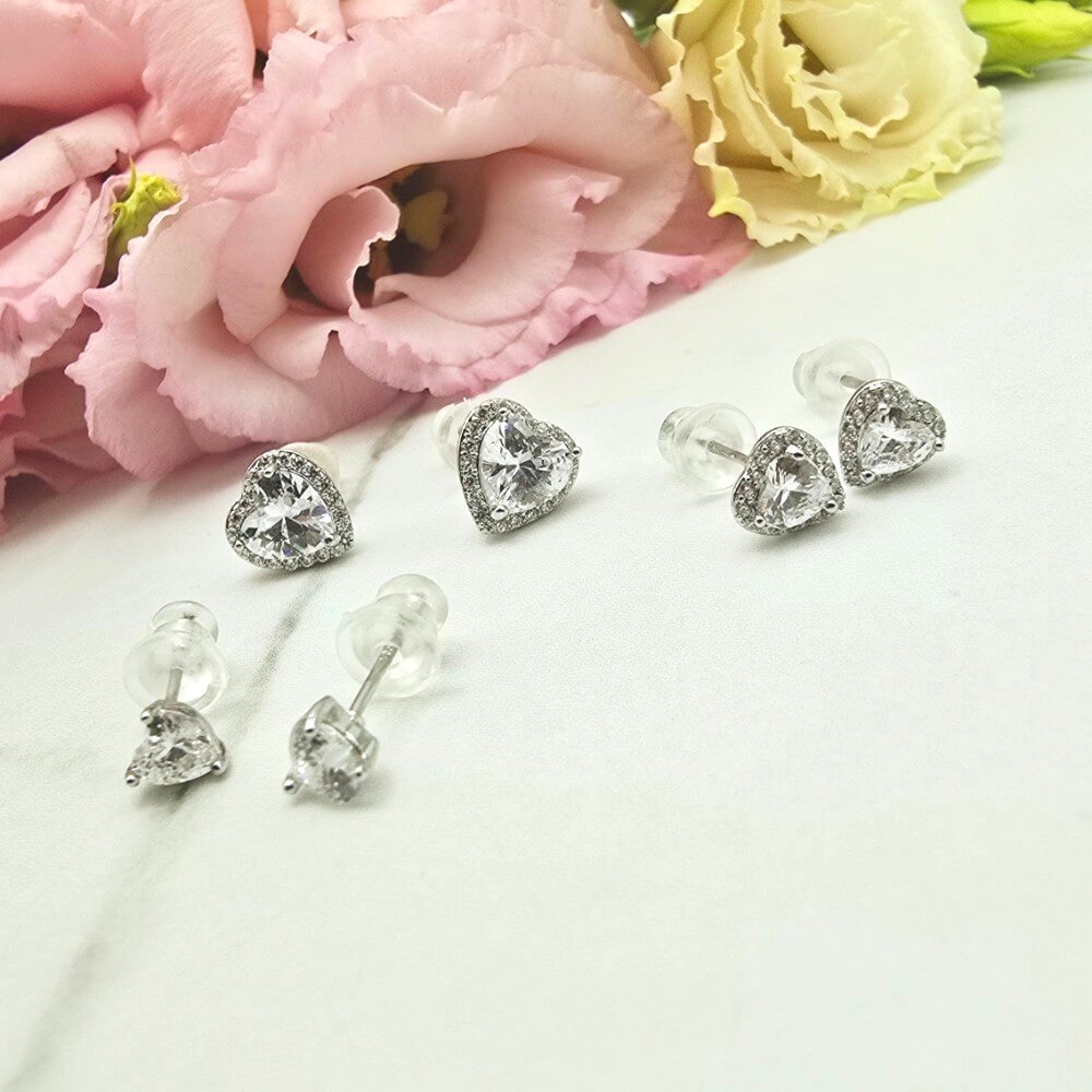 Kolczyki srebrne STAL CHIRURGICZNA zestaw 3 pary serca kryształki cyrkonie