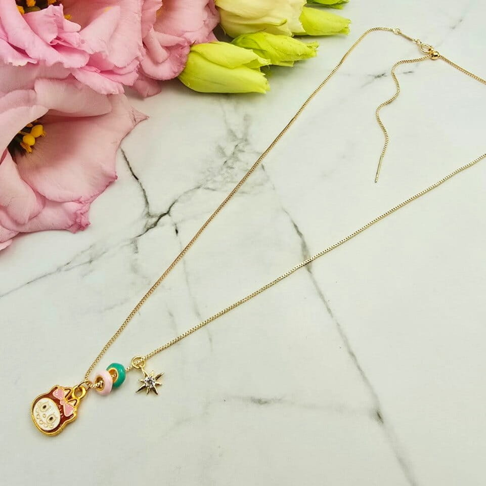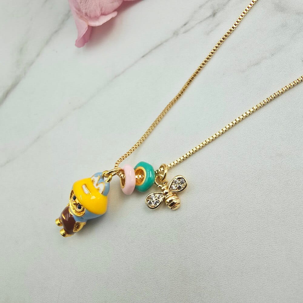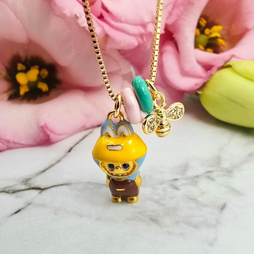 Cudowne naszyjniki dla dziewczynek z bardzo modną przywieszką Labubu! Dodatkowo ozdobne koraliki kolorowe i pszczółka z cyrkoniami. Naszyjnik z kolekcji StaloweLOVE wykonane z wysokiej jakości stali chirurgicznej 316L w złotym kolorze możesz nosić na co dzień non stop!!