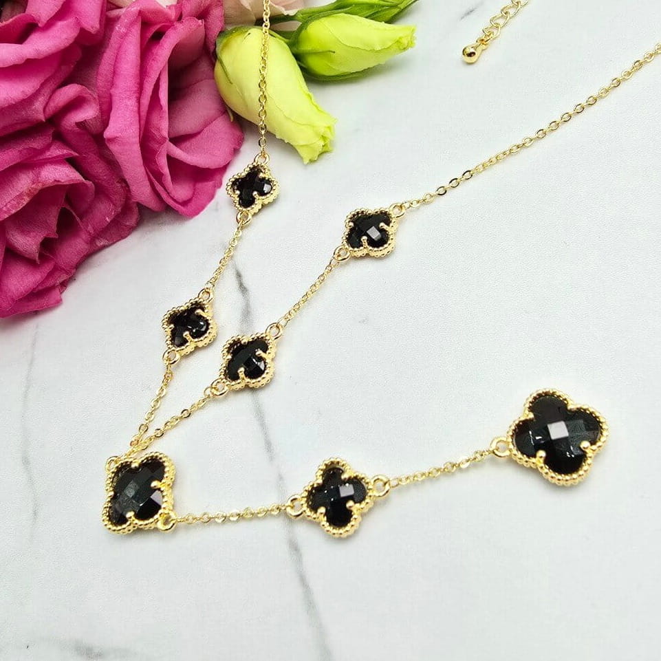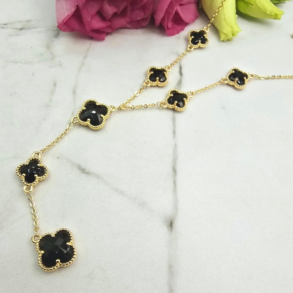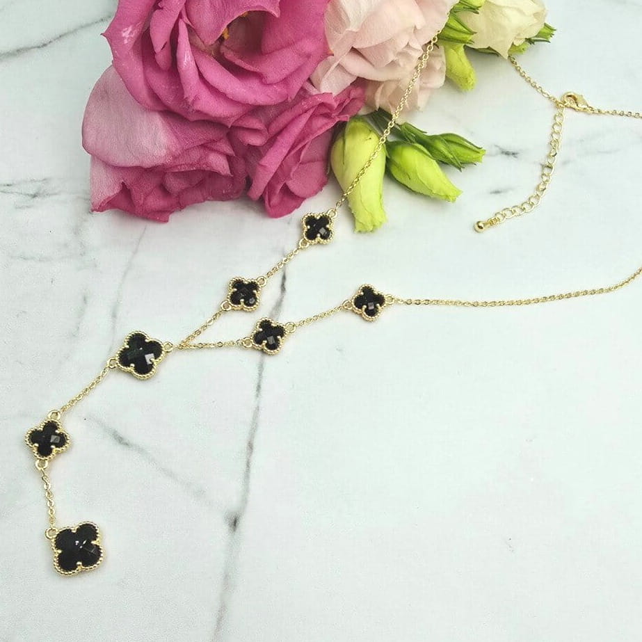 Cudowny naszyjnik ozdobiony koniczynami wypełnionymi czarnymi kryształkami z kolekcji StaloweLOVE. Naszyjnik krawatka. Super jakości naszyjnik kategorii PREMIUM.