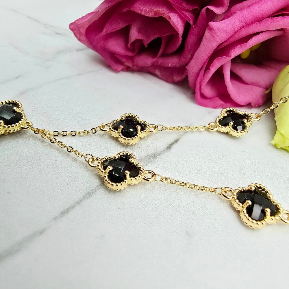 Bransoletka złota STAL CHIRURGICZNA koniczyny czarne