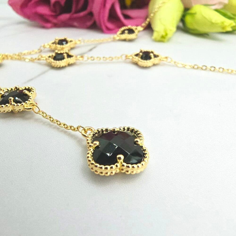 Naszyjnik STAL CHIRURGICZNA 95 cm czarne/złote koniczyny cyrkonie
