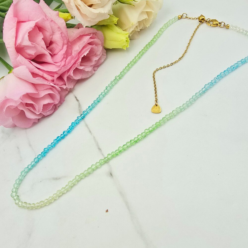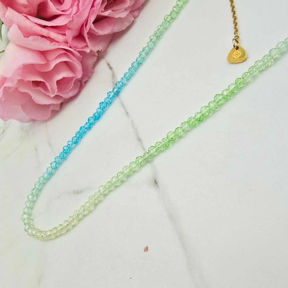 Naszyjnik STAL CHIRURGICZNA kryształki zielone i niebieskie