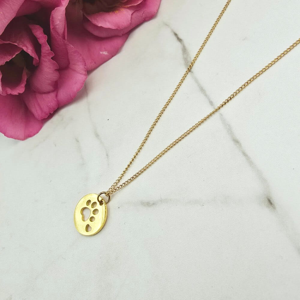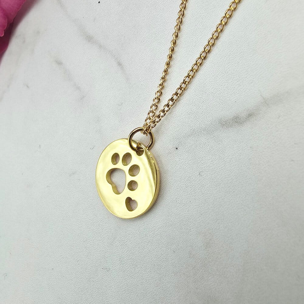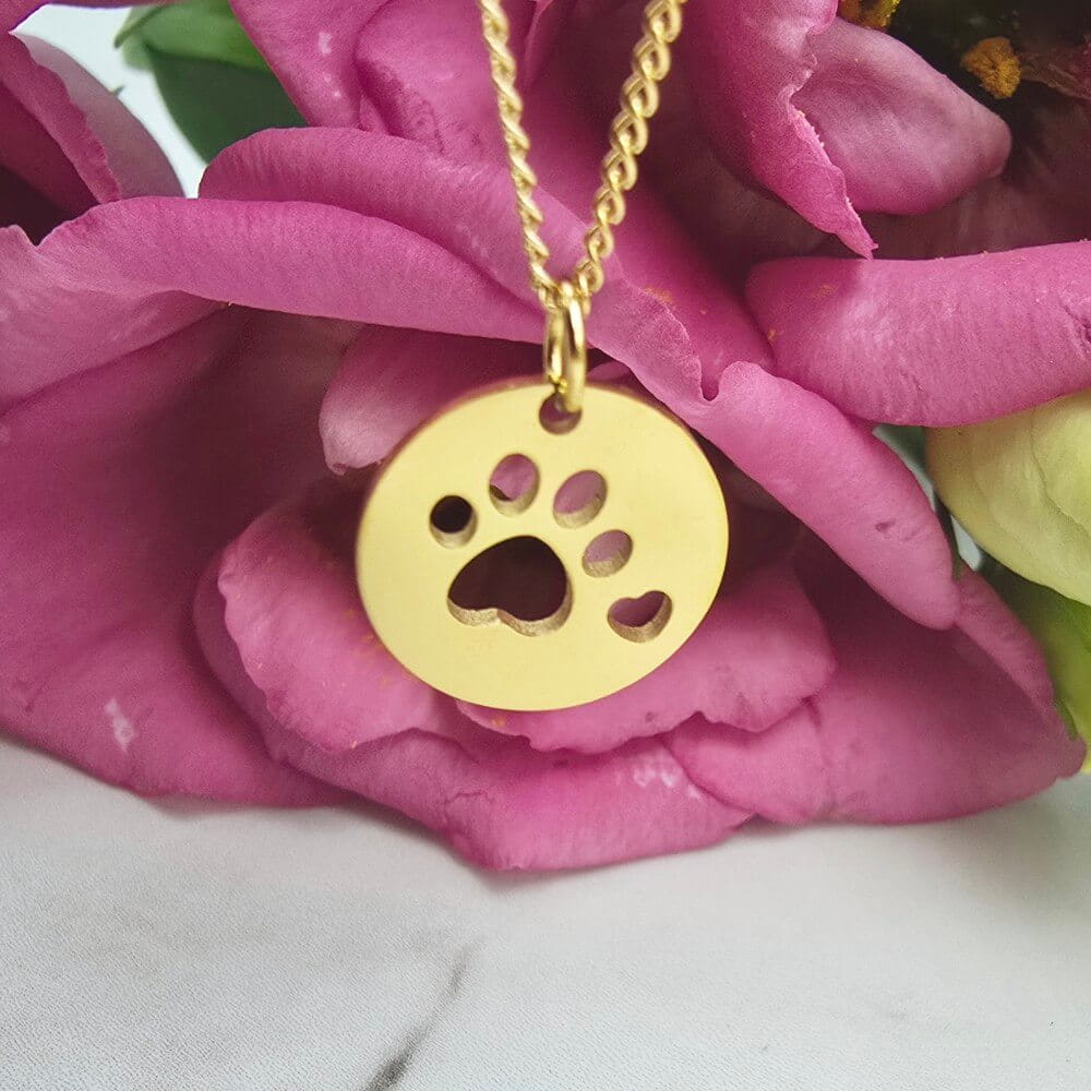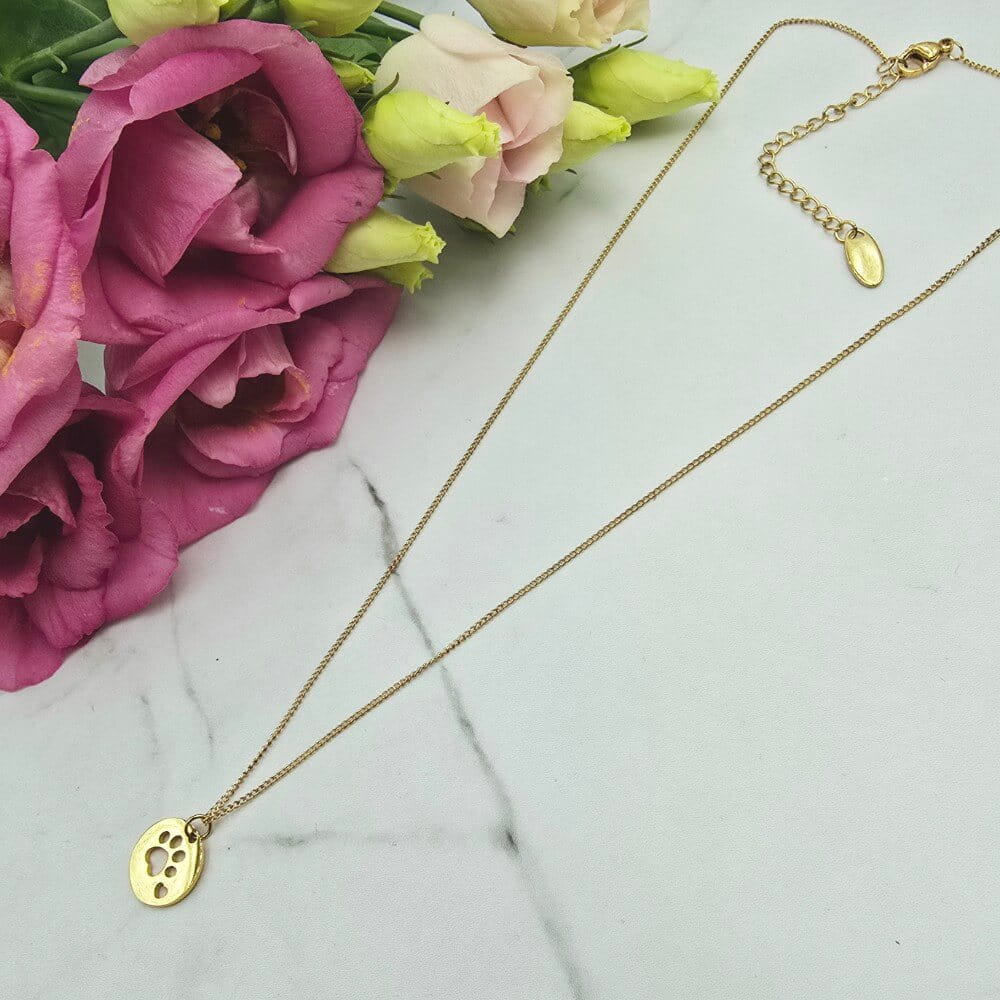 Naszyjnik ozdobiony zawieszką okrągłą ażurową łapką kota/psa. Jeżeli poszukujesz oryginalnego prezentu taki naszyjnik jest idealnym wyborem!!