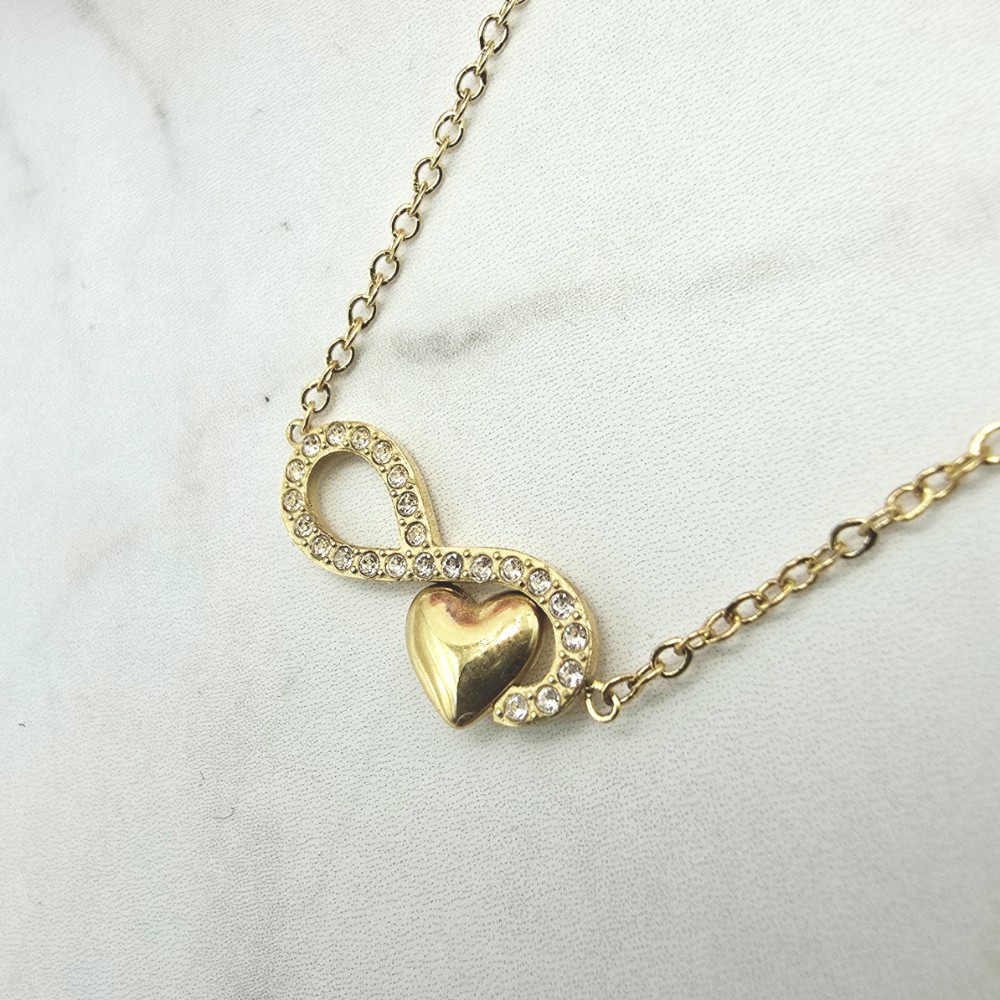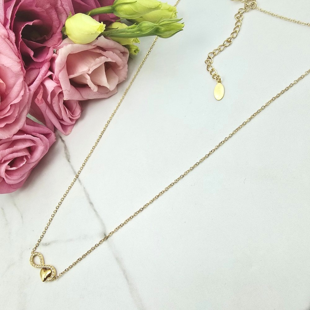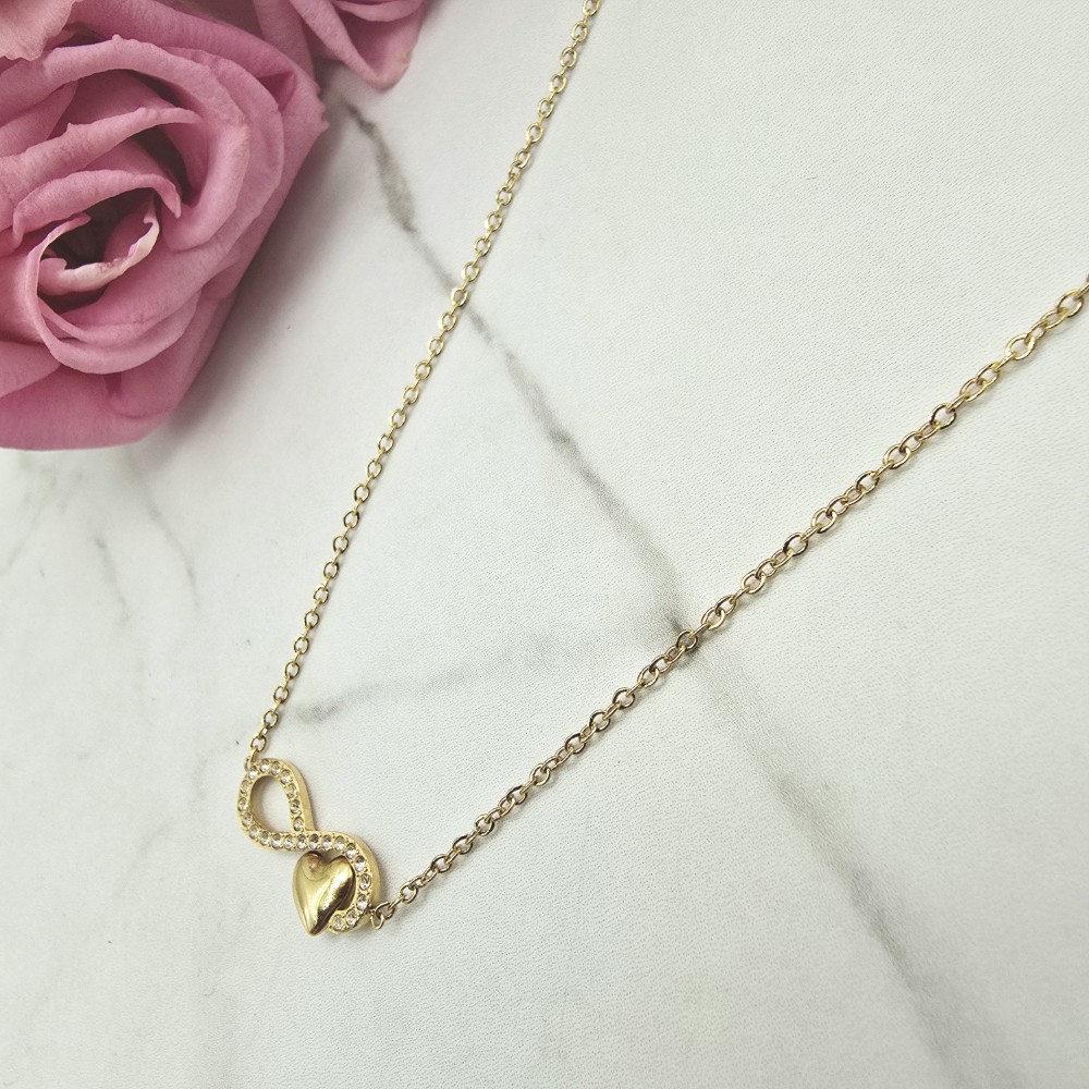 Naszyjnik STAL CHIRURGICZNA nieskończoność serce cyrkonie