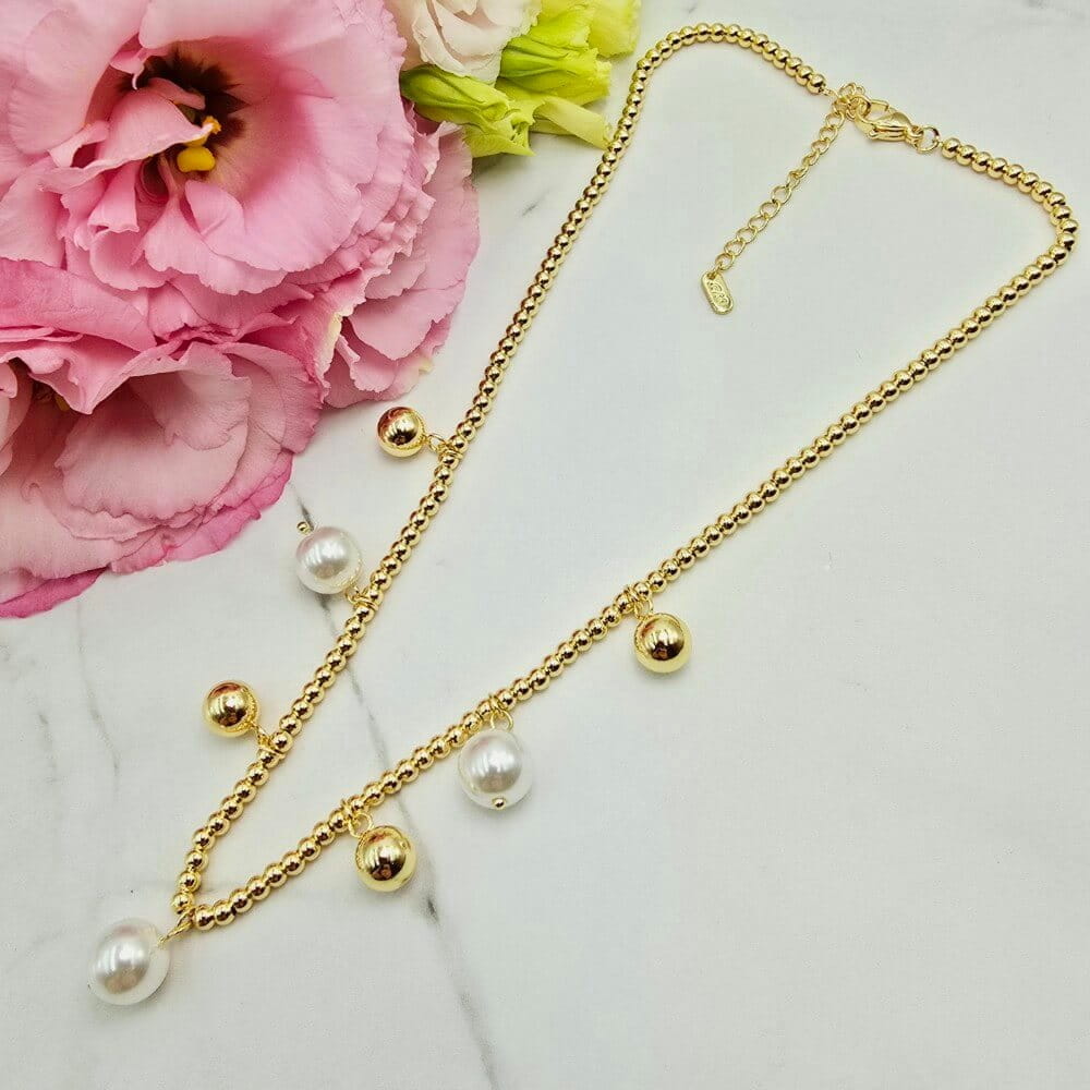 Stal chirurgiczna naszyjnik perły złote kuleczki