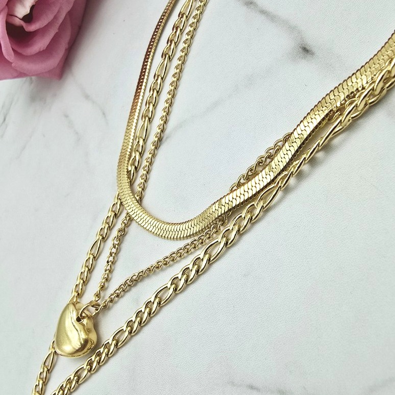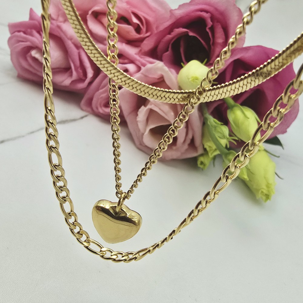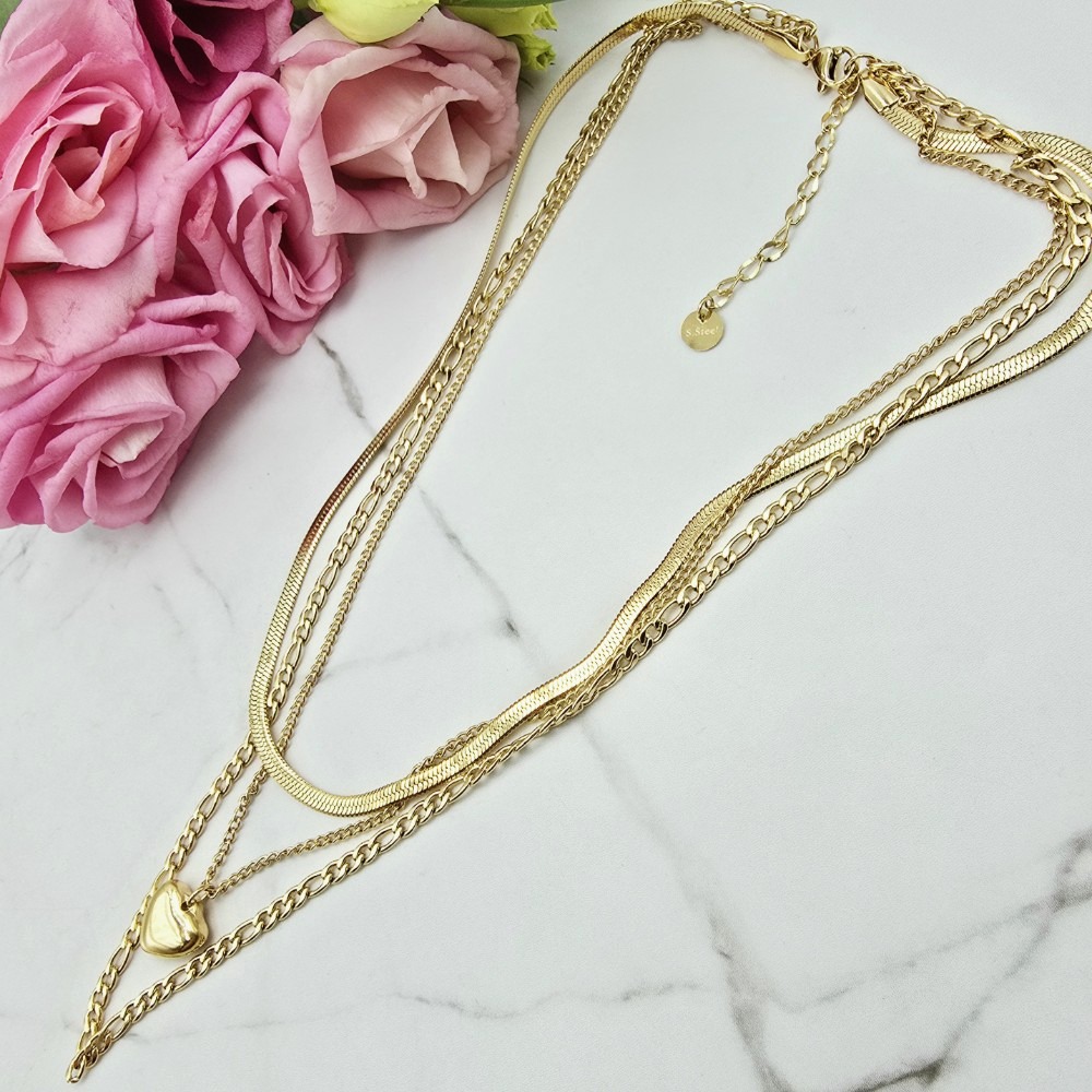 Świetny potrójny naszyjnik z kolekcji StaloweLOVE wykonany ze stali chirurgicznej składający się trzech łańcuszków różnego rodzaju i przywieszka serce. Naszyjnik cudownie prezentuje się to eleganckich kreacji wieczorowych lub codziennych stylizacji. Bardzo popularny wzór tego sezonu!!