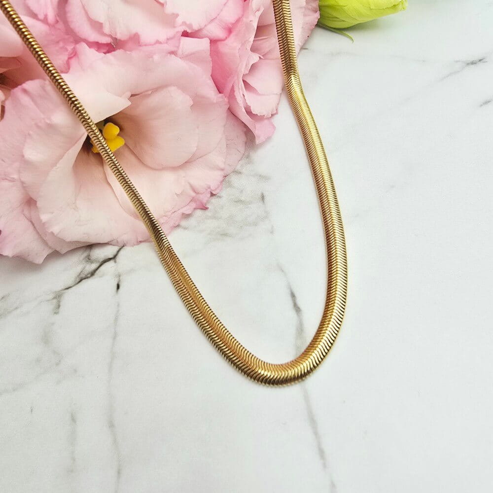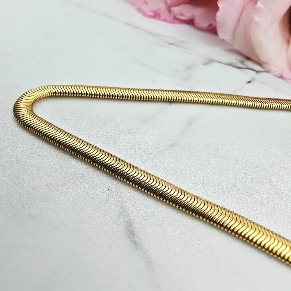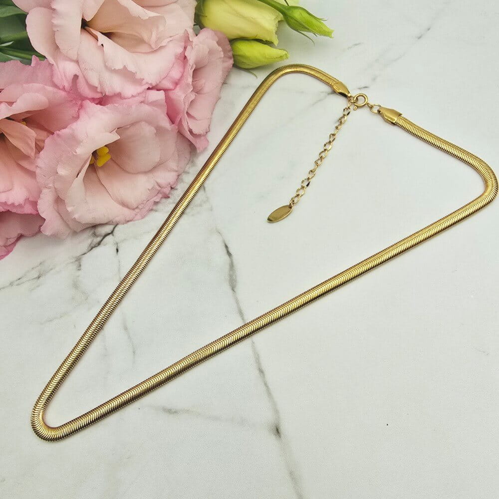 Naszyjnik szerszy żmijka 0,4 cm. Wzór żmijka płaska tzw. "lejąca" - łatwo układa się na szyi. Jeden z naszych BESTSELLERÓW od lat.
