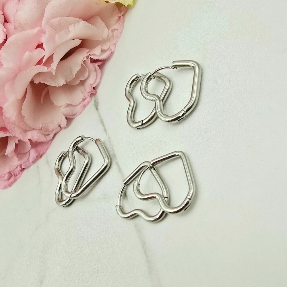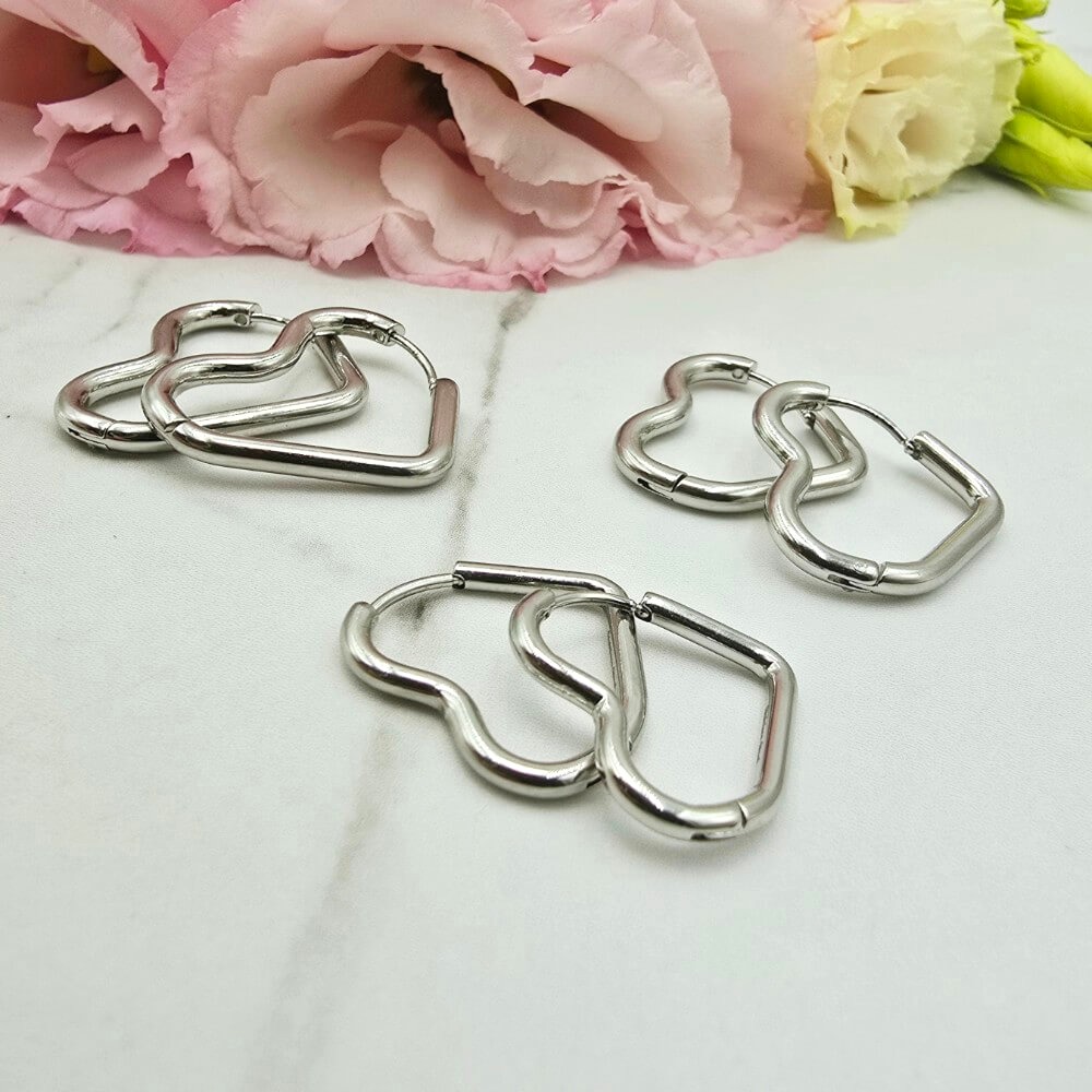 Wielkość serc: 2,5 cm 2,2 cm i 2 cm. Srebrny kolor stali chirurgicznej.